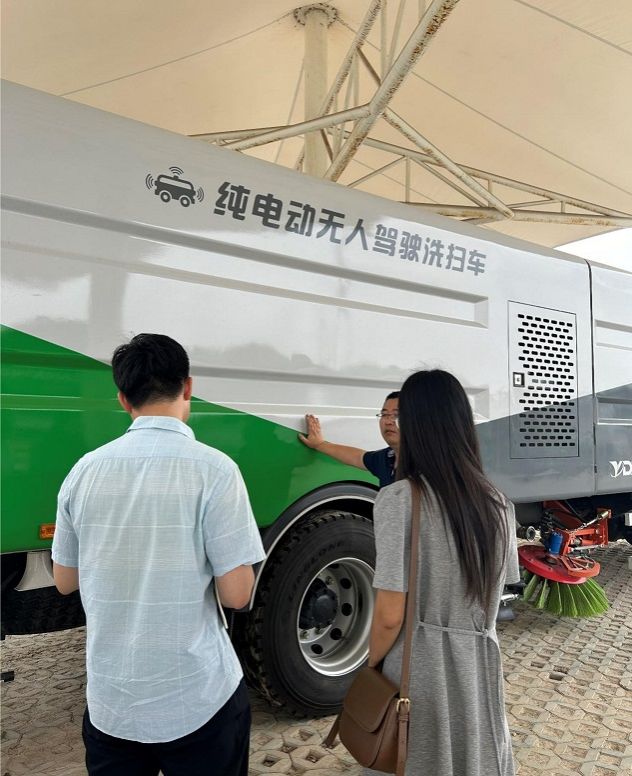 大家先后参观了小型无人驾驶清洁车、中型清洁车和纯电动无人驾驶清扫车,其中小型无人清洁车配备了多种传感器,如激光雷达,摄像头,超声波传感器等,是集成了先进技术和人工智能的智能设备,但受制于体积小等原因,该车主要用于地面平整的工厂等地方。相较于小型无人驾驶清洁车,中型清洁车则扩大了作业范围,更适合在道路、公共场所等进行清洁。负责人着重讲解了大型纯电动无人驾驶清扫车,该车采用宁德时代电池,续航可达365km,工作时长可达5小时,车载雷达探测精准显示前方150米内路况,拥有L4级别自动驾驶,精度可达0.1m,清扫宽度超过3.5m。之后,产品负责人讲解了无人驾驶主要面临的问题是如何将算法结合软硬件设备,进一步提高系统稳定性。