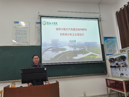 本次培训,车辆工程专业由吕红明老师、孙婷婷老师和万益东老师就各自的教学竞赛试讲内容作汇报。吕红明老师以“轴荷分配对汽车稳态转向特性的影响分析及合理设计”为题,从轻型货车的不足轴向设计作为任务,以国家标准规定的试验条件及试验规则入手,得出关键影响因素,对于结论展开对各种车型的讨论。孙婷婷老师以“配气定时”为题,介绍配气定时的定义,配气定时图的绘制,以及气门重叠角的定义和计算,加强了与《汽车构造》知识点的关联。万益东老师以“微分方程表示的基本环节数学模型”为题,以组合机床动力滑台及其力学模型为例,从具体案例入手,提炼方程。