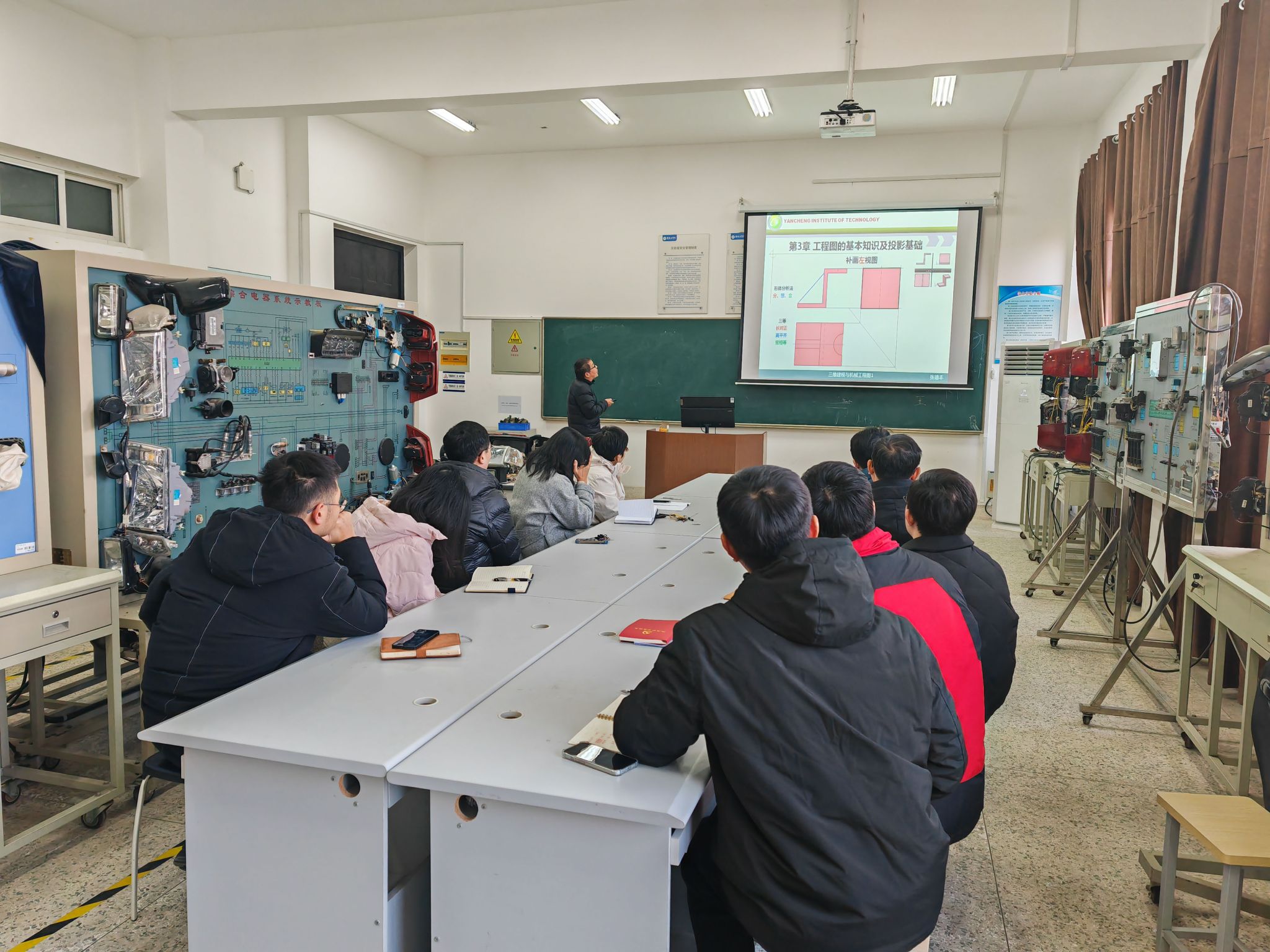 本次培训,车辆工程专业由4位老师就各自的教学竞赛试讲内容作汇报。刘老师以汽车理论中“制动力和制动力矩”为题,从制动力的影响因素入手,介绍相关专业知识。张老师以“工程图的基本知识及投影基础”为题,介绍三维建模与工程制图中左视图的补全方法,将“长对称,高平齐,宽相等”的口诀与示例相结合。陶老师以“无人驾驶技术中的感知传感器”为题,讲解了相关的国家标准。倪老师则讲解了机械原理中自由度及其计算方法,并引申出机构具有确定运动的条件。