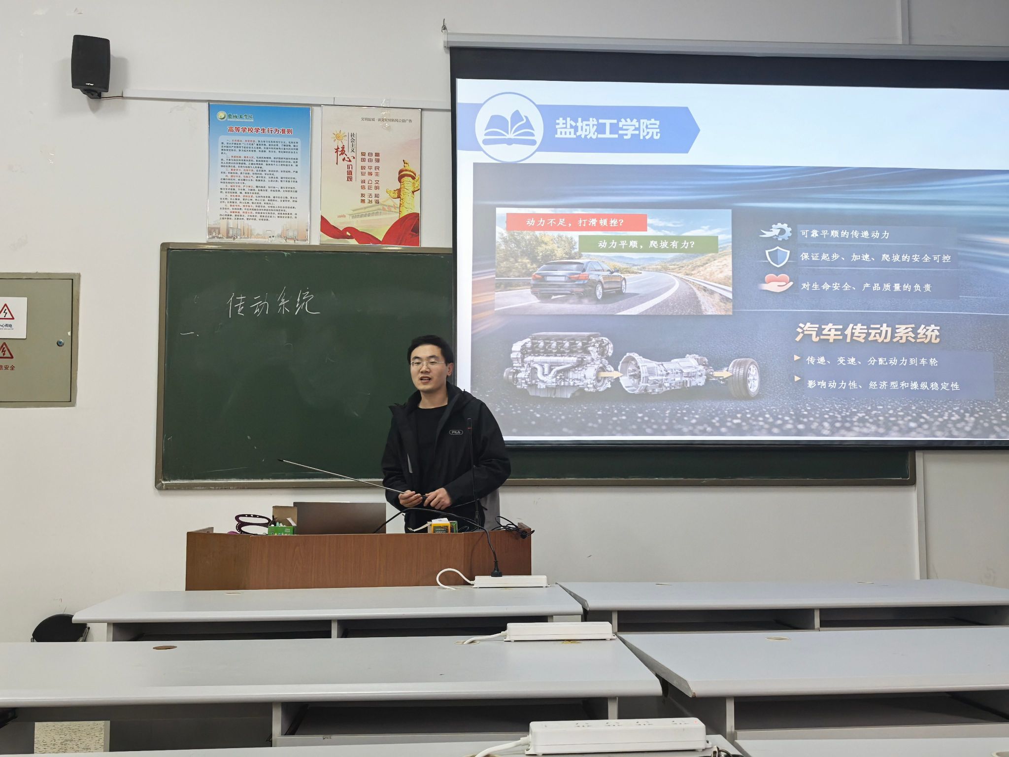 在本次选拔活动中,石小龙老师首先为大家讲解了工程图中各种位置直线及其投影特征;之后王辉老师为大家介绍了轮胎有侧偏时汽车转向的运动学相关知识;再之后李智宏老师向大家介绍了汽车的传动系统,并就其功能与组成等展开讲解;最后刘萍老师就测试系统中的信号调制与解调为大家进行了教学展示。