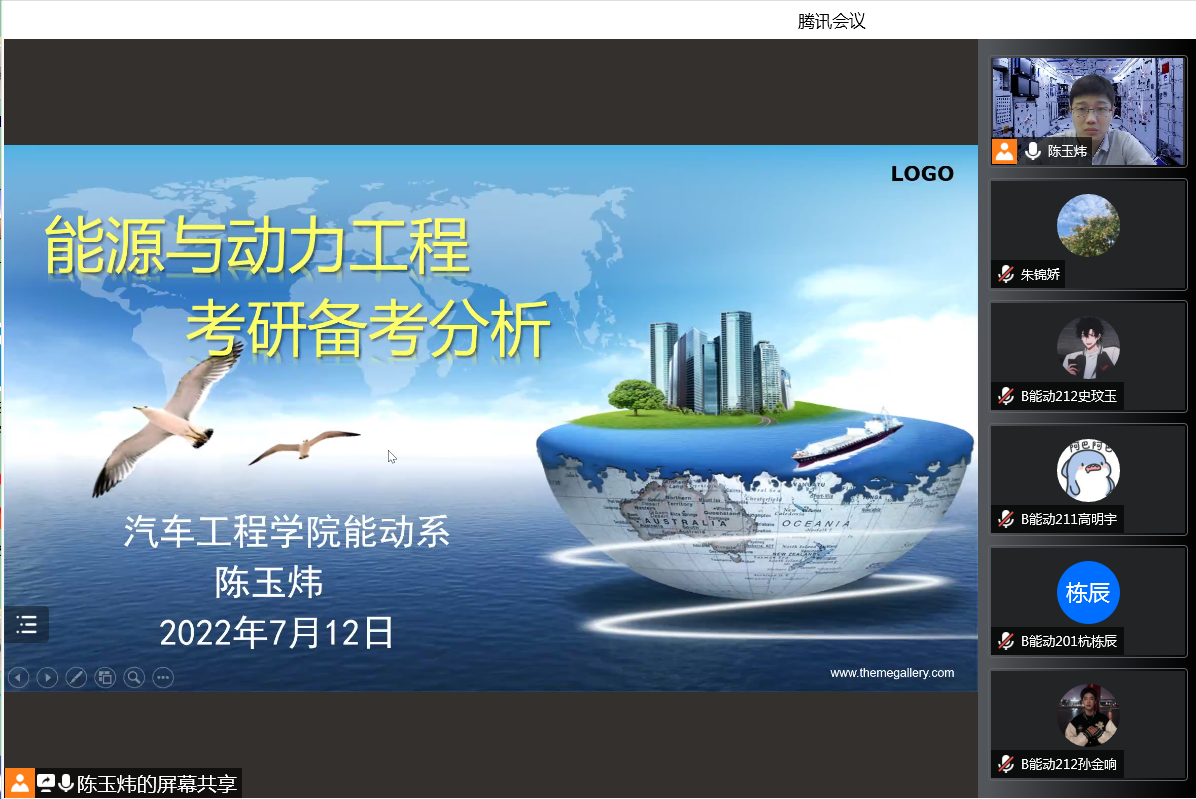 2022年07月12日晚上19:00,能动系主任陈玉炜面向19级、20级和21级能动系学生做考研讲座。