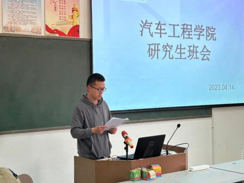 汽车学院研究生全体会议于2023年4月14日12时30分,在机械馆B413组织了汽车学院研究生班级会议,该会议由范景森老师主持,研一、研二全体学生出席参会,会议中具体强调了学风建设、学院制度等方面的事宜。