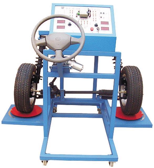 本实验台由全新主流车系电动助力转向系统实物总成组成,包括:方向盘、万向机、前悬挂系统、车轮、转角盘、控制单元、电动机、扭矩传感器、实训台支架。适用于中高等职业学校和培训机构的汽车底盘构造与维修实训教学,能够满足电动助力转向系统的结构组成,动作演示故障诊断分析等教学需求。