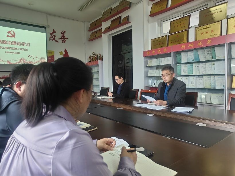 4月3日,汽车工程学院教工党支部在机械馆A323组织支部政治理论学习。本次学习由支部书记熊永莲主持,全体教工党员参加。