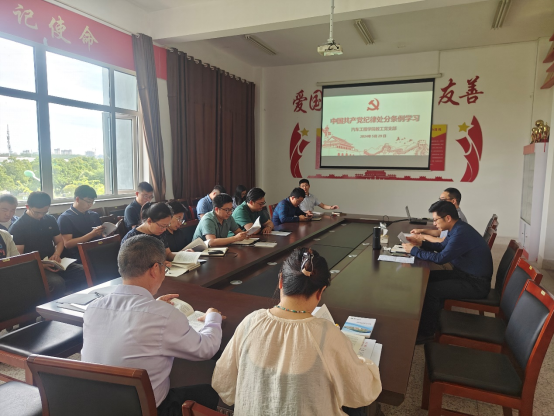 6月12日下午,汽车工程学院教工党支部在机械馆A323集中学习了《中国共产党纪律处分条例》并集体观看了《持续发力 纵深推进》| 第4集 一体推进“三不腐”。本次学习由支部书记熊永莲主持会议,全体教工党员参加。