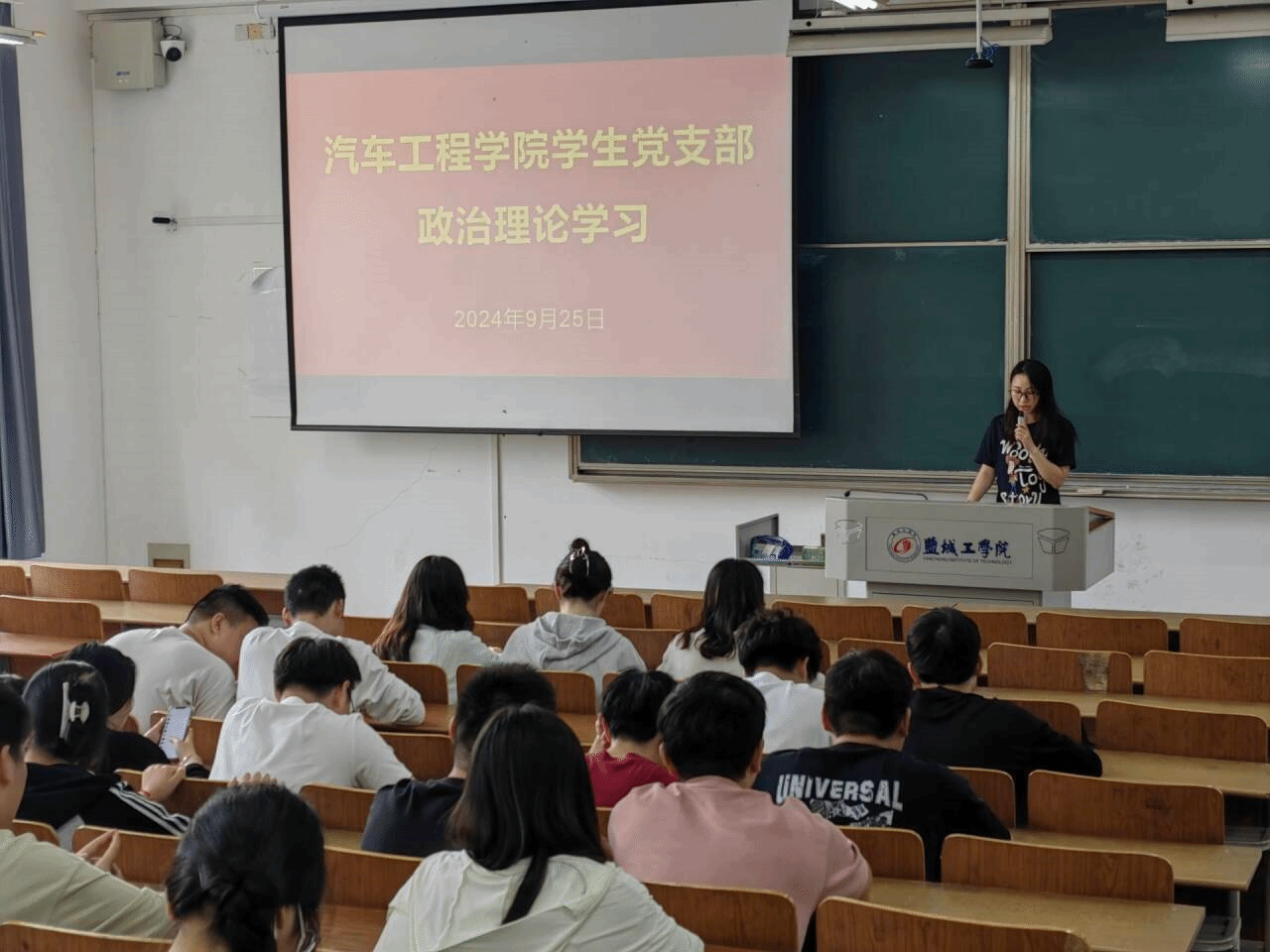 9月25日中午,汽车工程学院学生党支部在南校区博学楼D117组织9月份支部政治理论学习,学习内容主要分为党纪教育及《求是》杂志发表习近平总书记一系列重要文章《时刻保持解决大党独有难题的清醒和坚定,把党的伟大自我革命进行到底》、《必须坚持人民至上》、《加强文化遗产保护传承弘扬中华优秀传统文化》。本次学习由支部书记孙进主持,全体学生党员参加。