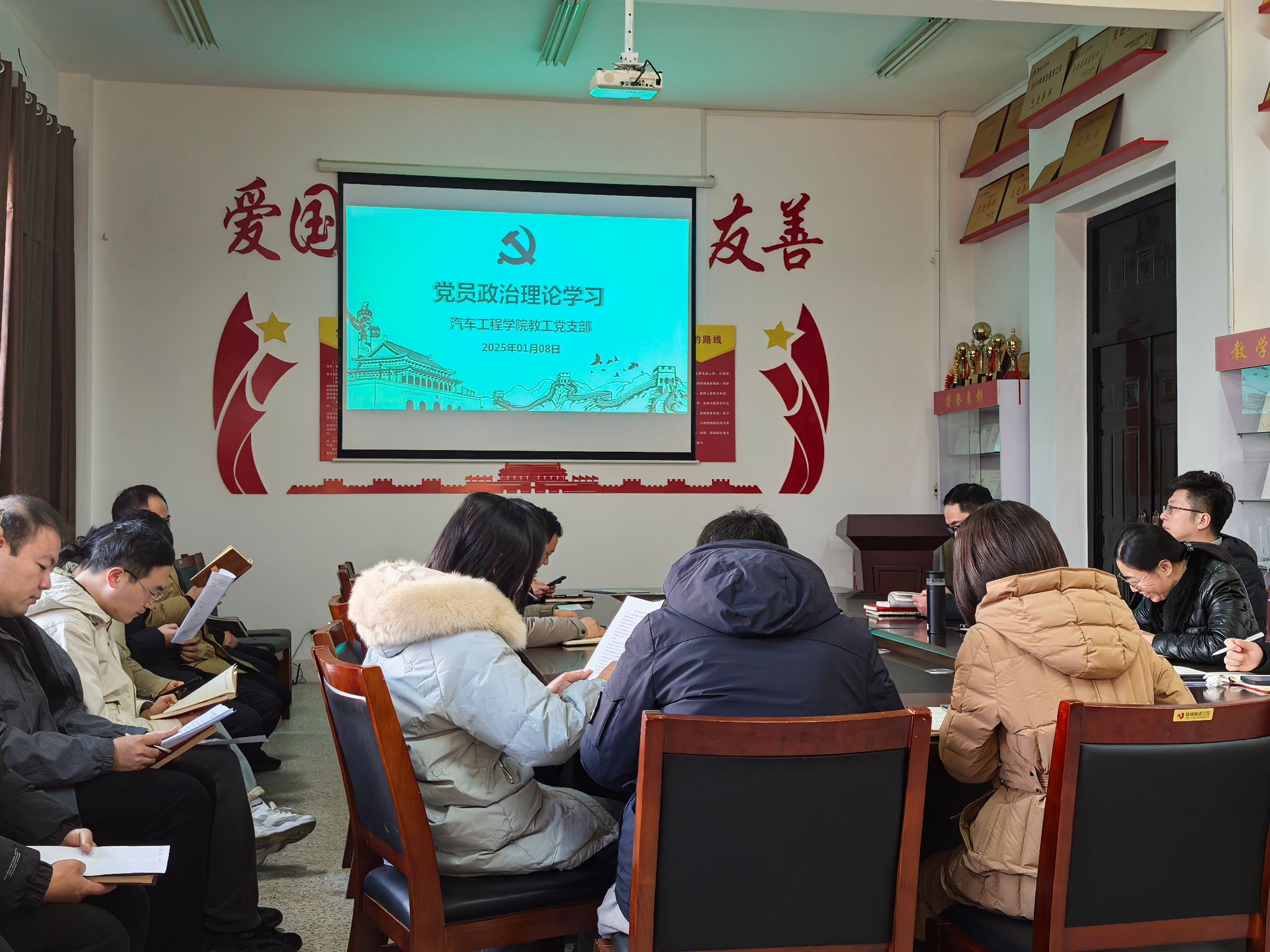 1月8日,汽车工程学院教工党支部在机械馆A323开展了政治理论学习。本次学习由支部书记熊新同志主持,全体教工党员参加。