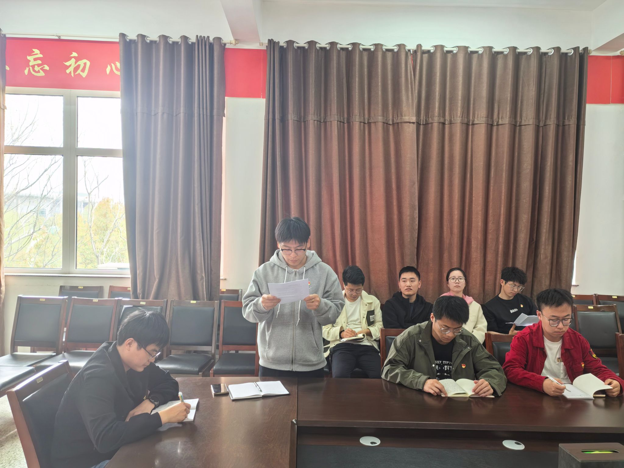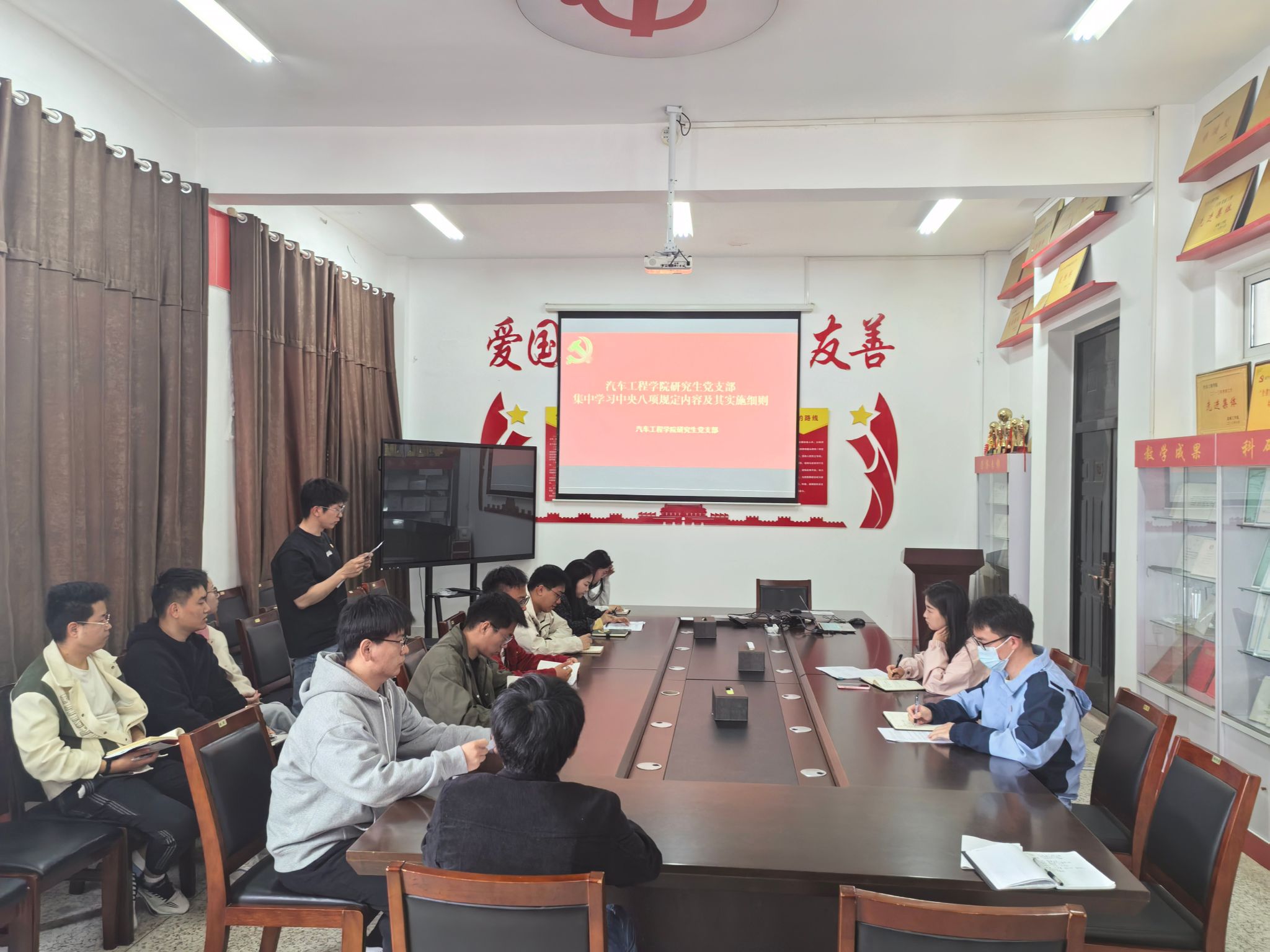 汽车工程学院研究生党支部于2025年4月23日在机械馆A323组织召开政治理论学习会议。