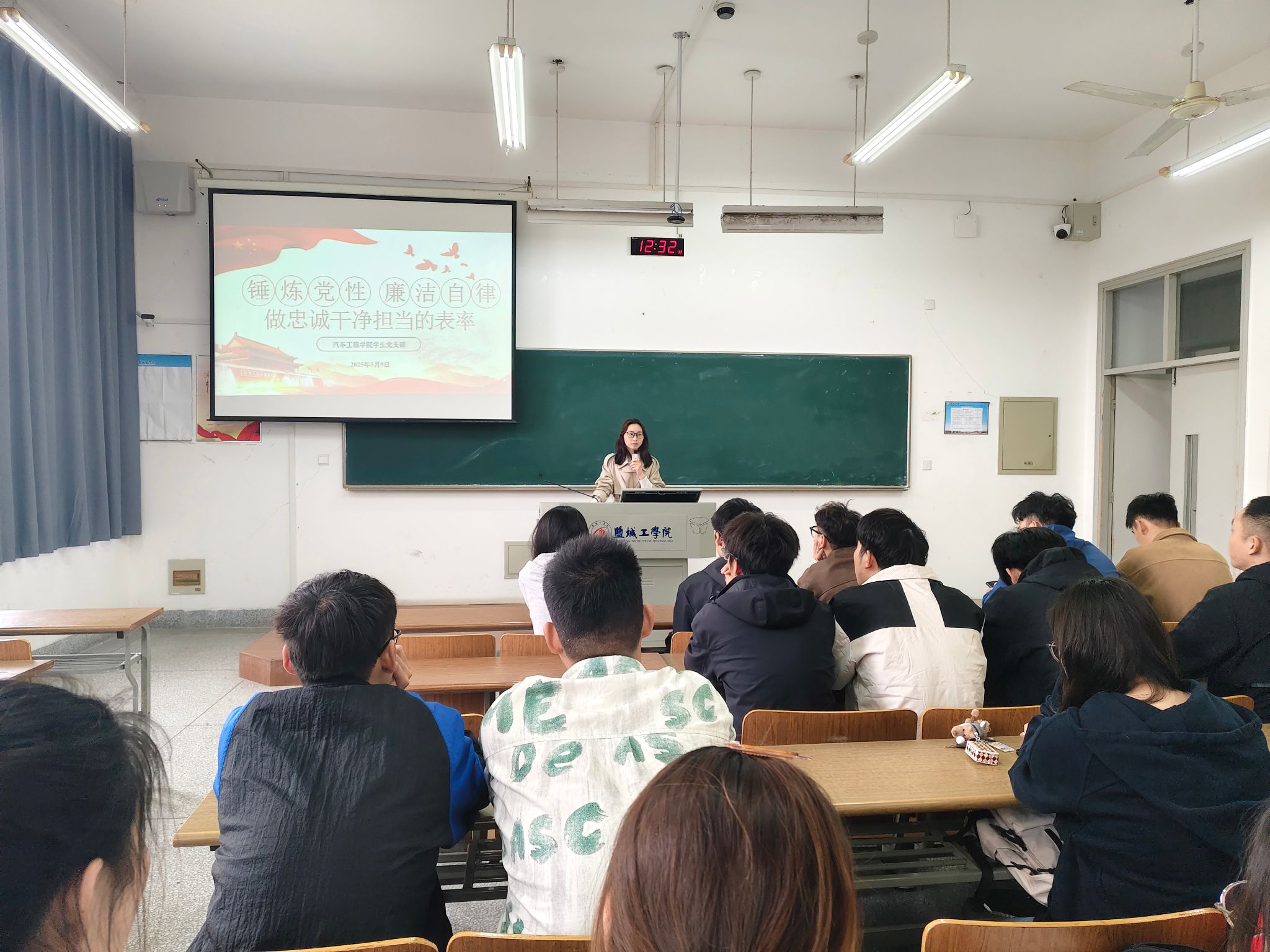 为深入贯彻落实全面从严治党要求,持续深化党风廉政建设,筑牢学生党员拒腐防变思想防线,汽车工程学院学生党支部于 5月9日下午组织全体党员开展 “510” 思廉月警示教育主题党课,紧密结合中央八项规定精神,以学促廉、以学正风,引导青年党员扣好廉洁自律的 “第一粒扣子”。