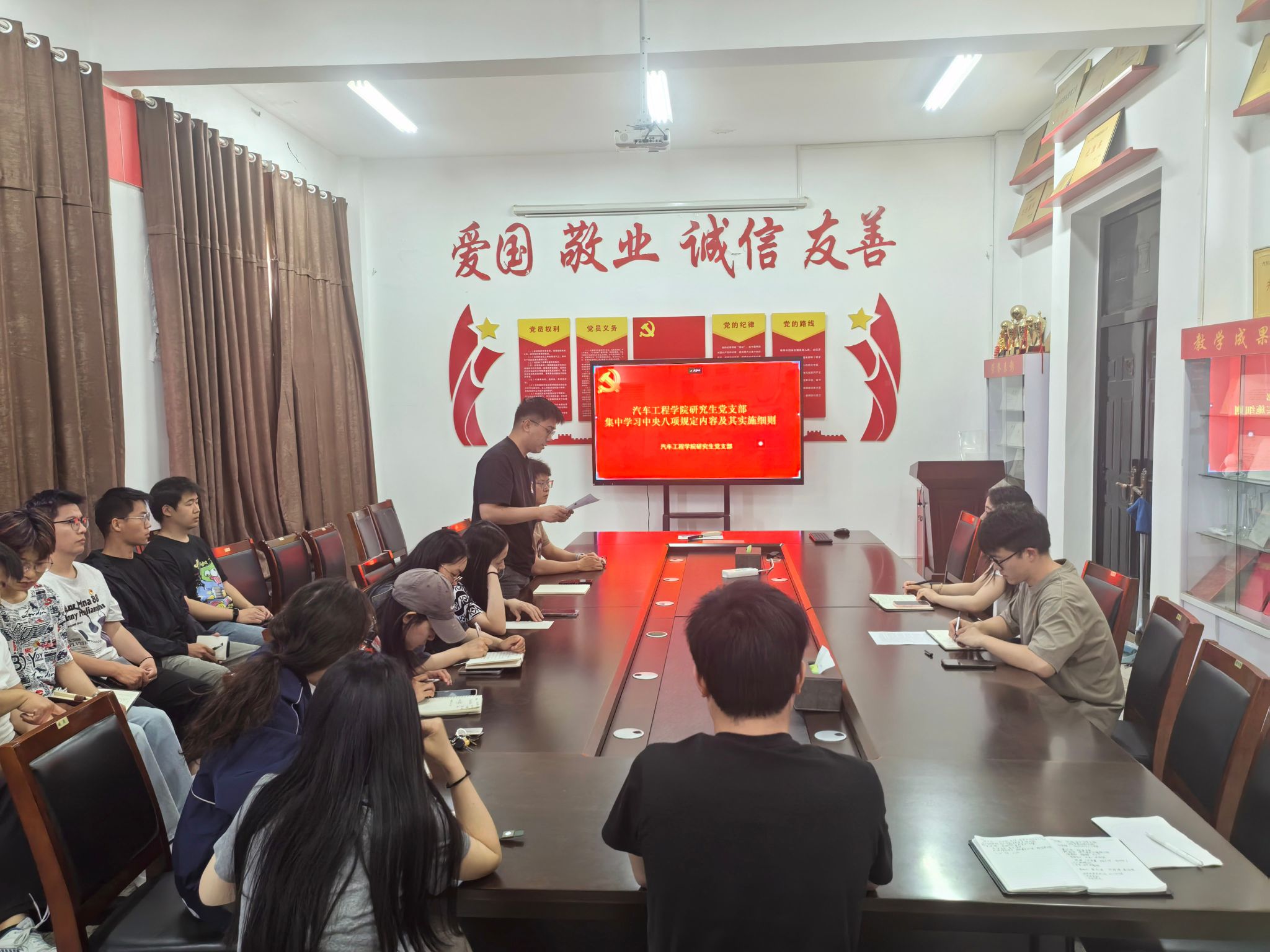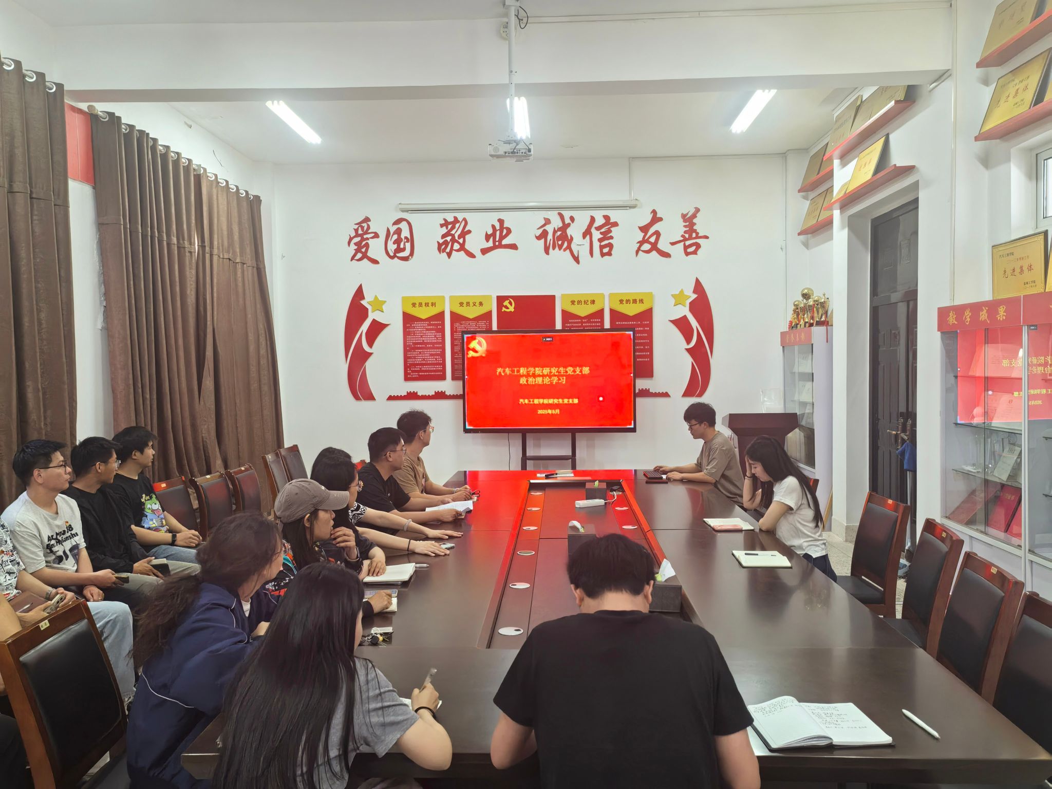 汽车工程学院研究生党支部于2025年5月29日在机械馆A323组织召开政治理论学习会议。