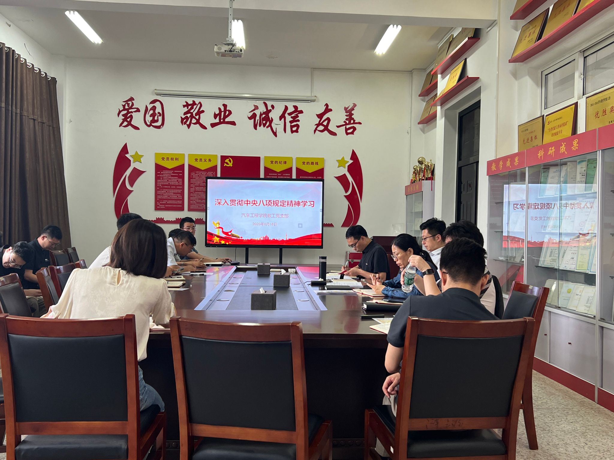 6月18日,汽车工程学院教工党支部在机械馆A323召开集中理论学习会,深入贯彻落实《盐城工学院2025年春学期师生深入贯彻中央八项规定精神学习教育工作安排》要求,扎实推进作风建设和党风廉政教育工作。