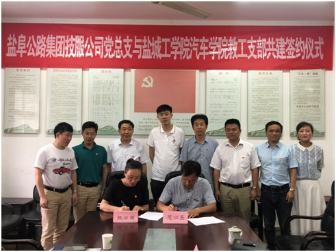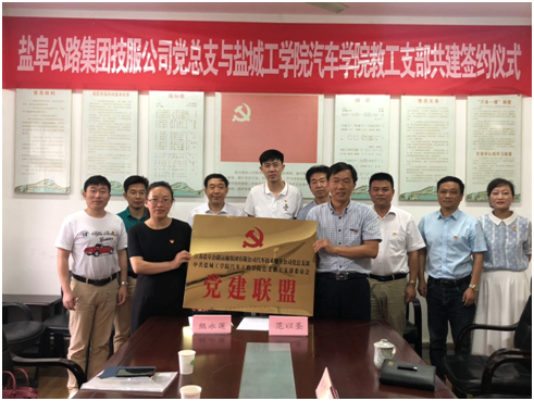 为实现党组织优势互补,党建促发展,进一步深化产教融合,增强学院发展的活力,为企业输送高素质人才,实现专业与产业企业的更好衔接,7月22日下午汽车工程学院院长倪骁骅,支部副书记熊永莲同志一行五人到达盐阜集团汽车技术服务公司(以下简称“盐汽技服”)参加双方“党建共建、发挥合力、共赢未来”校企共建研讨会暨党建联盟签约活动和授牌仪式,会议由盐汽技服党总支书记、总经理范以圣主持,集团总经理助理陆明等一行人出席。