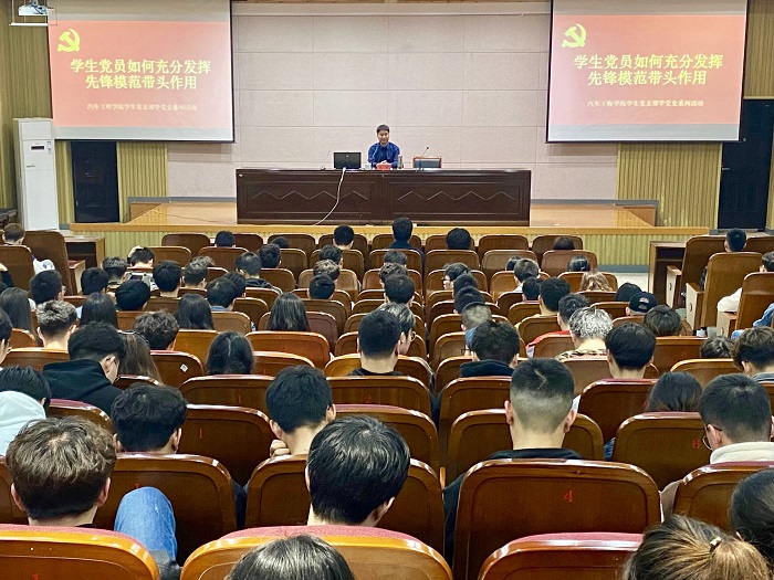 4月22日晚,汽车工程学院学生党支部在南校区机械馆报告厅举办“学党史,强信念,发挥模范带头作用”专题讲座。学院党总支书记张雷主讲,学院党总支副书记、学生支部书记姜华主持,学院学生党员、入党积极分子等200余人参加。