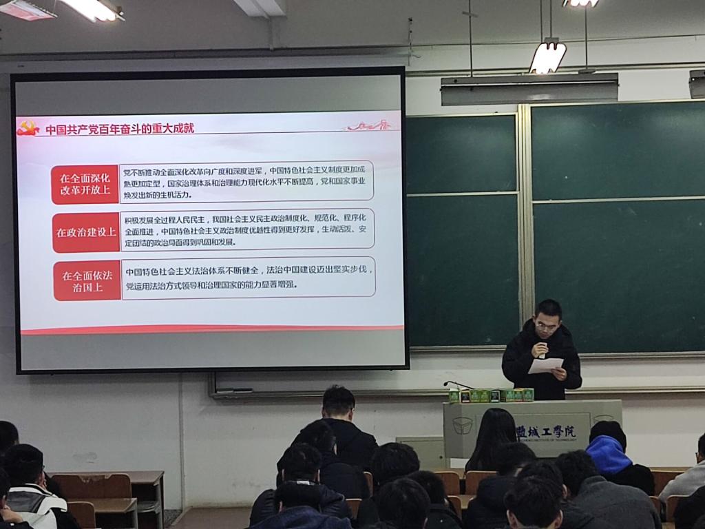 学习会上,由团委副书记孙进老师作了题为《百年大党再出发,在新时代新征程上赢得更加伟大的胜利和荣光》的专题宣讲。他首先介绍了六中全会精神的召开情况,重点讲解了“一个根本问题”即中国共产党是什么、要干什么这个根本问题;讲解了“两个确立”:即党确立习近平同志党中央的核心、全党的核心地位,确立习近平新时代中国特色社会主义思想的指导地位;讲解了总结党的百年奋斗重大成就和历史经验的“三个需要”;讲解了中国共产党百年奋斗的历史意义和积累的宝贵历史经验等。学生党员结合近期学习心得,作了交流分享。