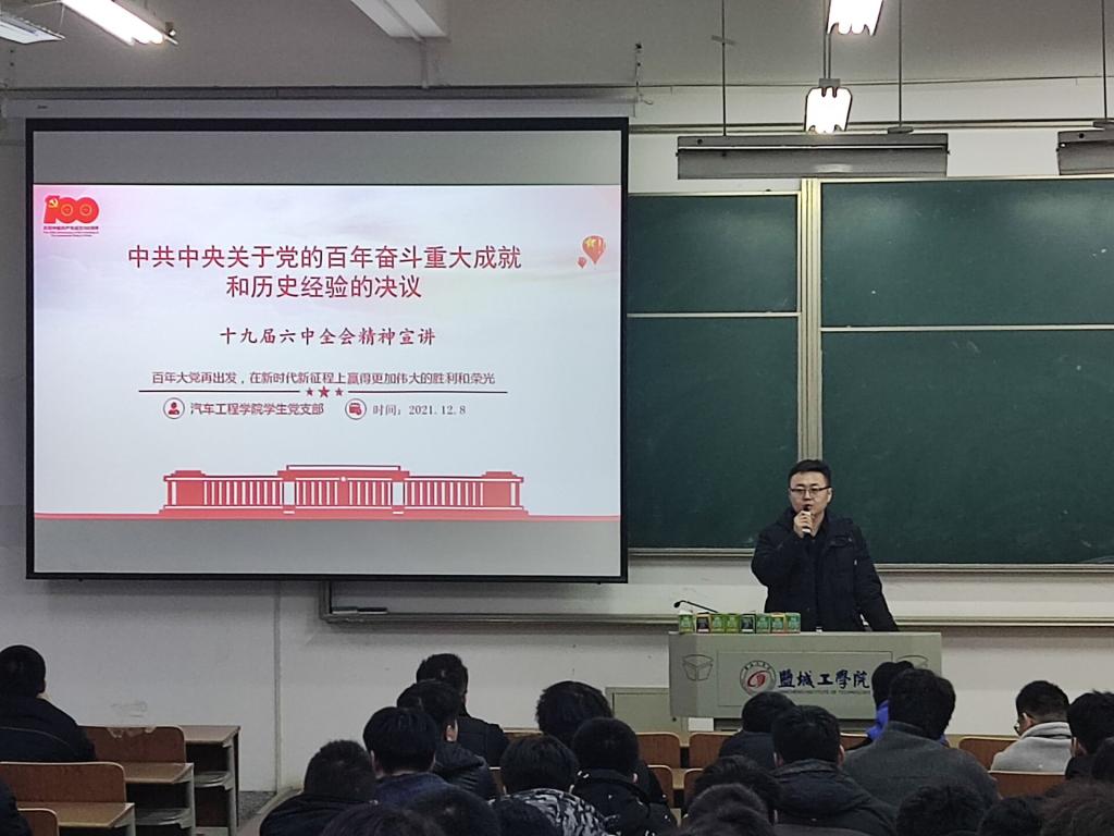 12月8日晚,在博学楼D215教室,汽车学院学生党支部召开专题学习党的十九届六中全会精神。全体学生党员参加学习。