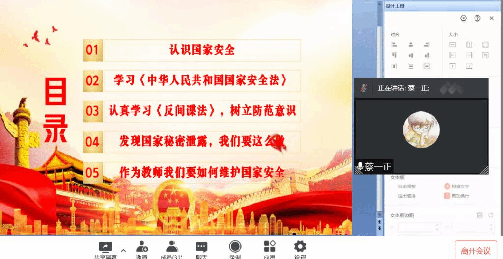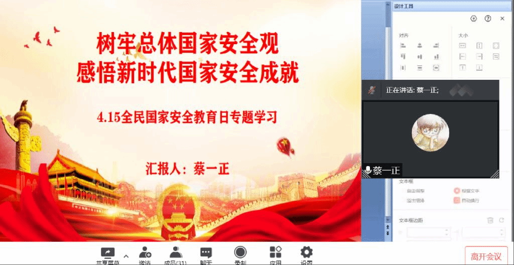 2022年4月15日是我国第七个全民国家安全教育日,为教育支部党员教师树牢总体国家安全观,感悟新时代国家安全成就,4月13日下午,汽车工程学院教工党支部通过腾讯会议开展“4.15全民国家安全教育日”专题学习活动。会议由教工支部书记熊永莲“线上”主持,学院全体教工党员“线上”参会。