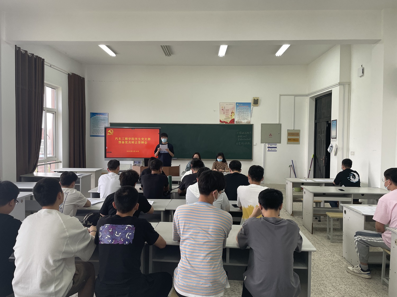 5月18日下午,汽车工程学院在机械馆B407和B412分别召开预备党员转正答辩会,学院党总支副书记姜华、学生党支部委员担任评委。答辩会分别由党总支副书记姜华和学生党支部书记孙进主持,51名本科生预备党员和1名研究生预备党员参加。