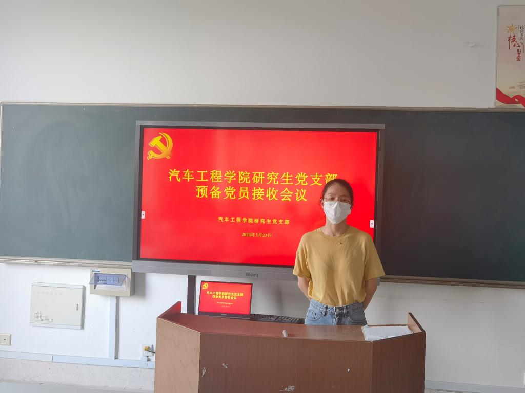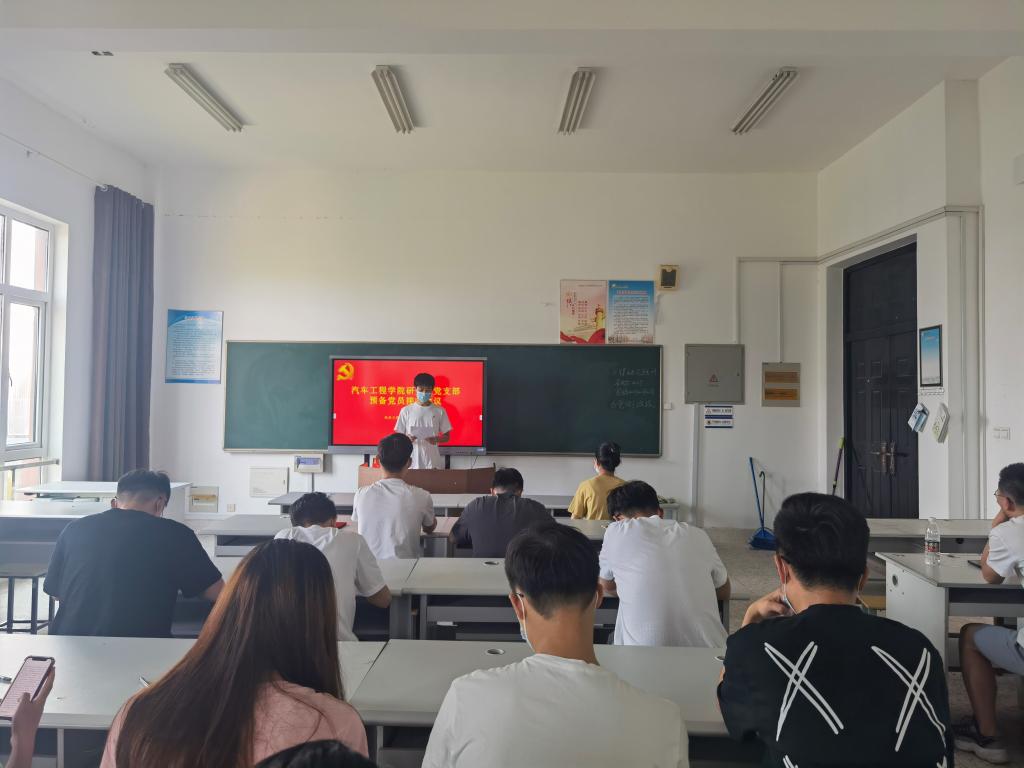 2022年5月23日下午,在南校区机械馆B407教室,汽车学院研究生党支部召开党员大会讨论接收预备党员,会议由支部组织委员易婷老师主持。