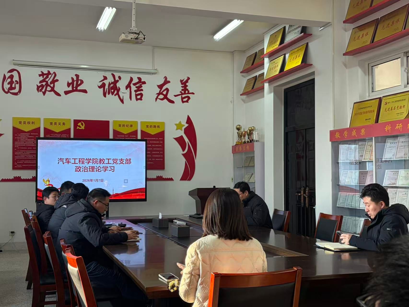 1月7日下午,汽车工程学院教工党支部在学院会议室召开政治理论集中学习活动。会议由熊新主持,按照支部学习计划,朱乃宣老师领学,全体教工党员参加。本次学习重点围绕《党政机关厉行节约反对浪费条例》、落实意识形态工作责任制相关制度以及《整治形式主义为基层减负若干规定》等重要内容展开。