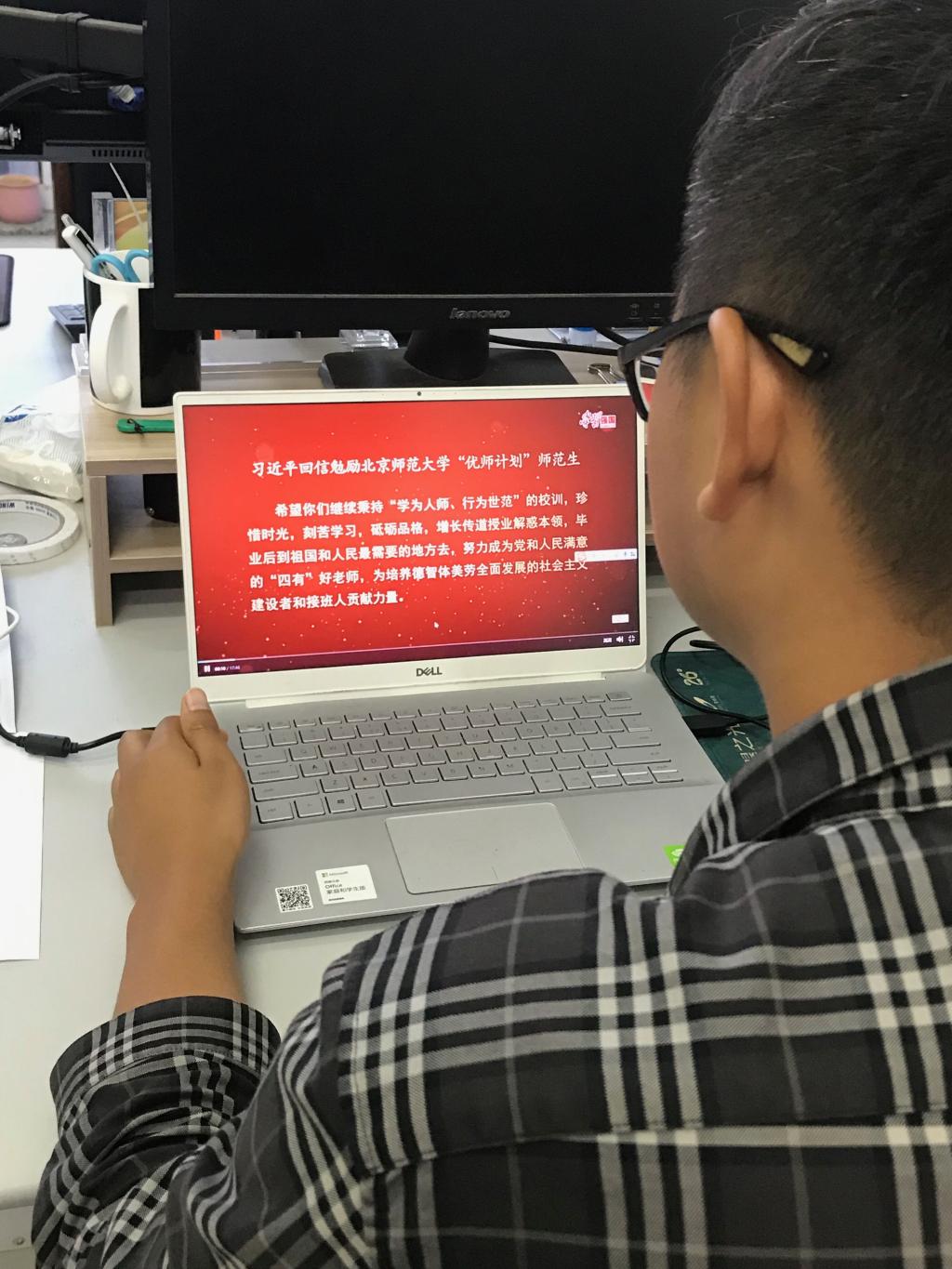 在第三十八个教师节来临之际,为勉励全国广大教师牢固树立中国特色社会主义理想信念,牢固树立终身学习理念,牢固树立改革创新意识。教育部教师工作司联合“学习强国”学习平台出品了《习近平的教师情》记录短片,回顾了近十年来,习近平总书记在考察走访各类学校、回复师生回信和人才、科技工作会议上的讲话。9月10日教师节当天,教工党支部组织支部党员教师观看学习该视频。