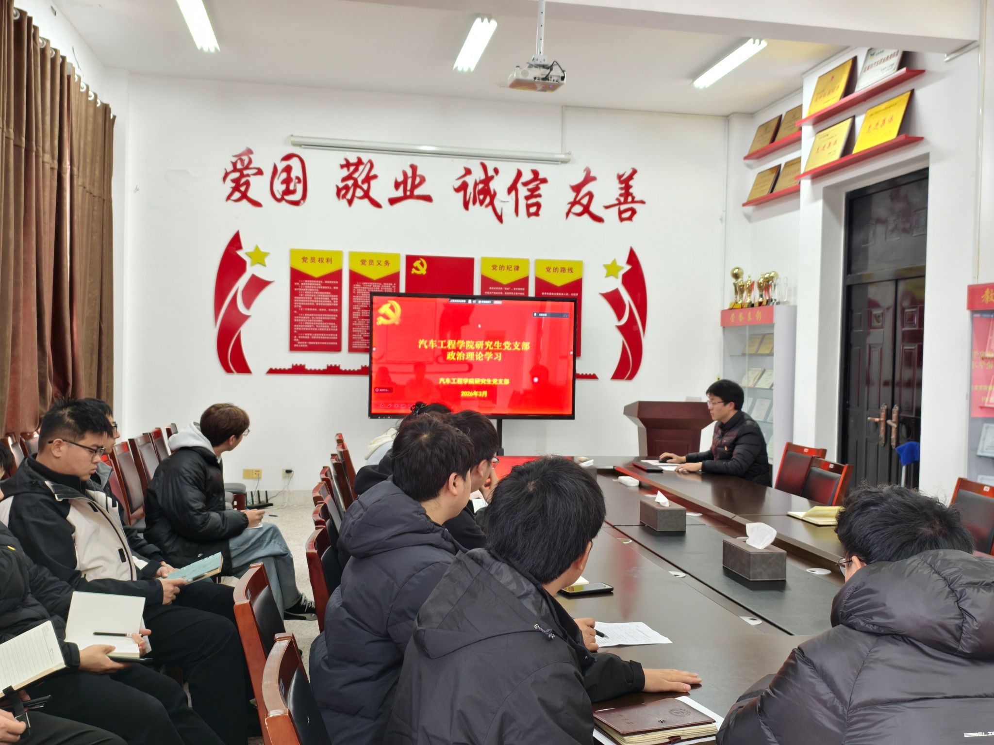汽车工程学院研究生党支部于2026年3月26日在机械馆A323组织召开政治理论学习会议。