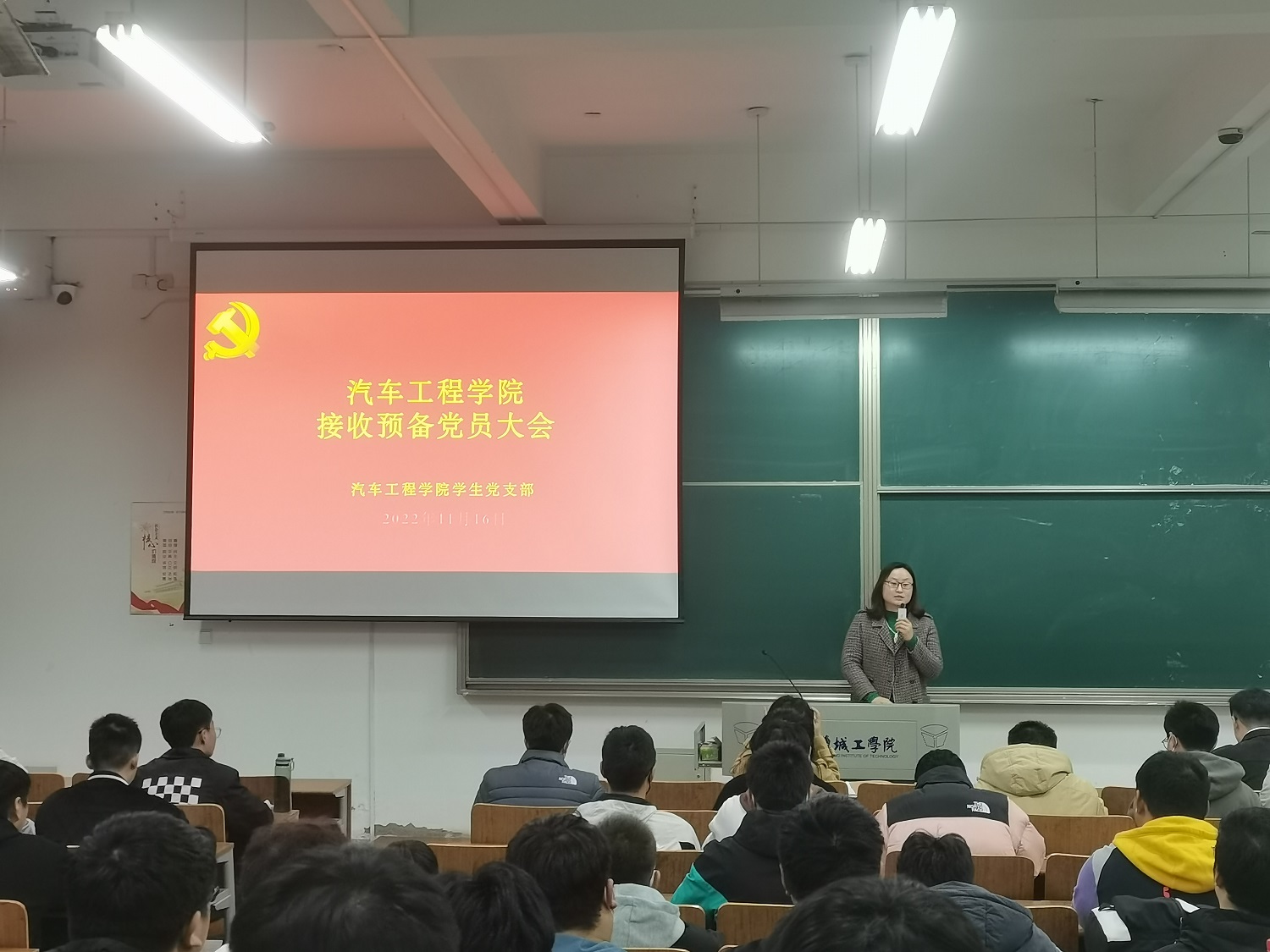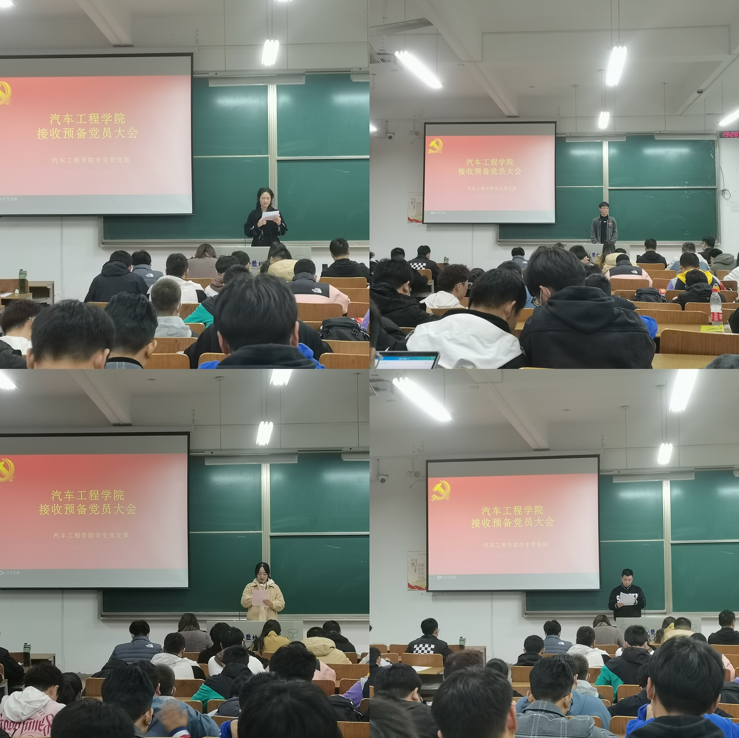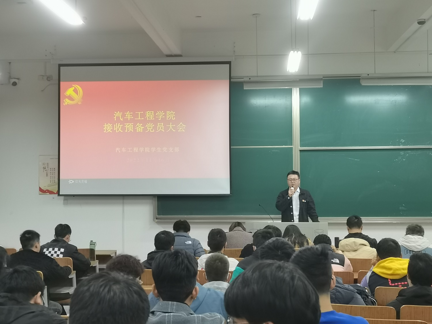 11月16日晚,在南校区博学楼D113教室,汽车学院学生党支部召开接收预备党员大会,会议由支部书记孙进主持,全体支部党员参加。
