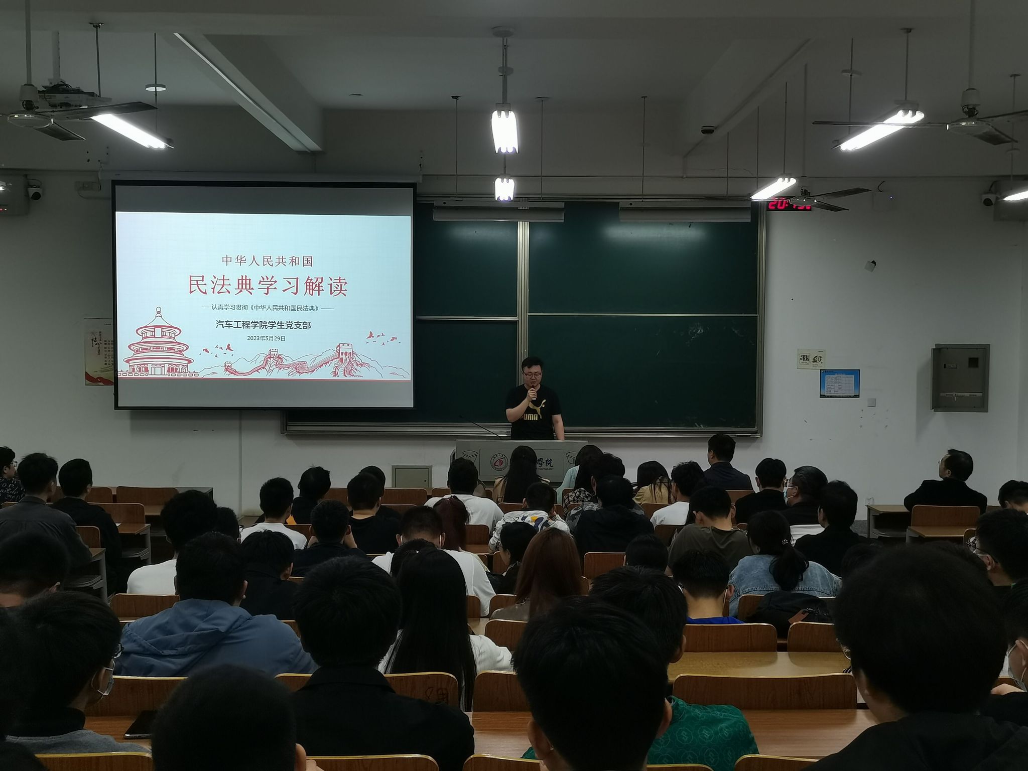 为认真学习贯彻《中华人民共和国民法典》,切实把握民法典颁布实施的重大意义,进一步增强党员们学法、用法知识,5月29日晚,汽车学院学生党支部在博学楼D117开展了“学习《民法典》,争做懂法人”专题学习。