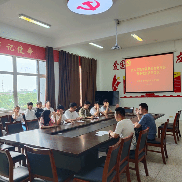 2023年6月2日中午,汽车学院研究生党支部召开党员大会讨论预备党员转正事宜,会议由张坤主持,范景森老师及支部全体党员参加。