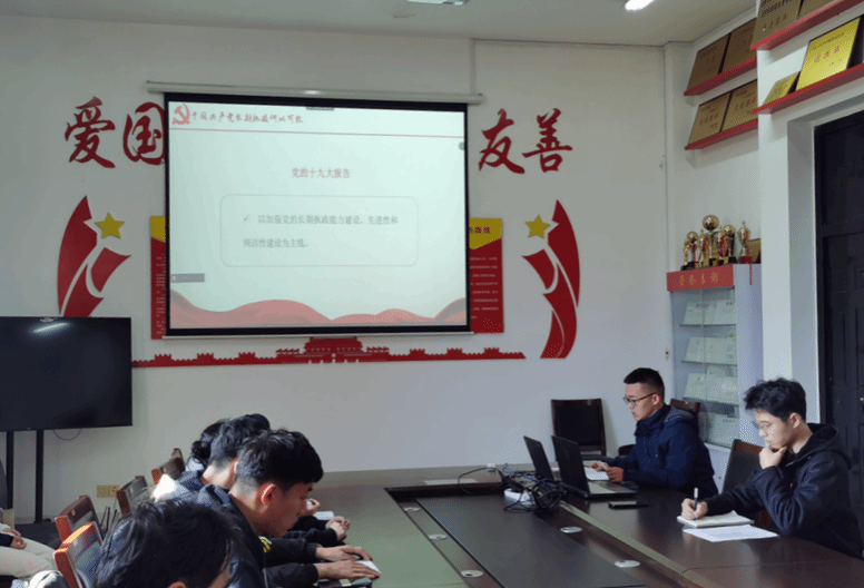会议开始,由范景森同志就习近平新时代中国特色社会主义思想进行深入讲解。随后魏金呈、陈昕羽、谢双健三名党员对本次政治理论学习分享收获及心得。