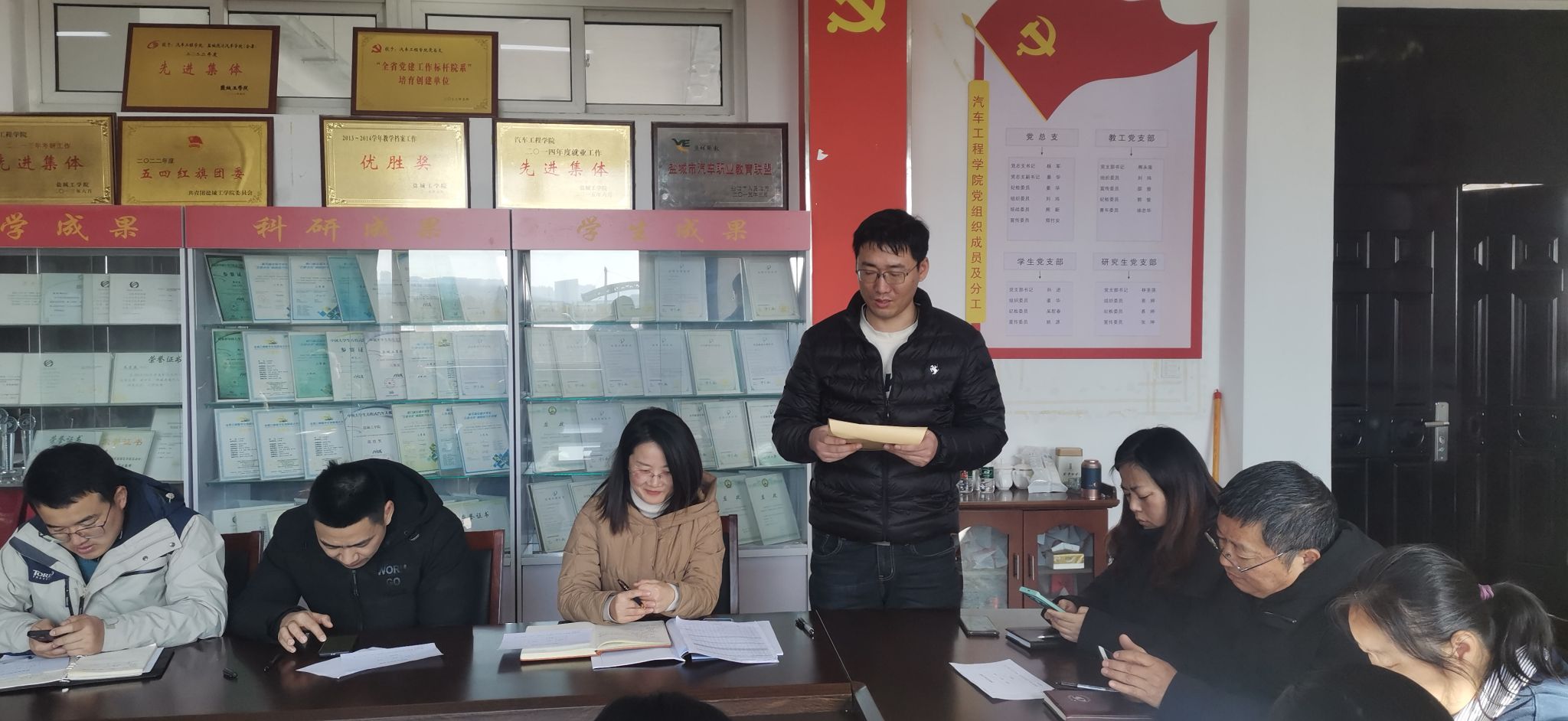 12月1日上午,汽车工程学院教工党支部在机械馆A323会议室召开党员大会讨论预备党员高豪杰同志转正事宜。会议由教工党支部书记熊永莲主持,17名正式党员参会。