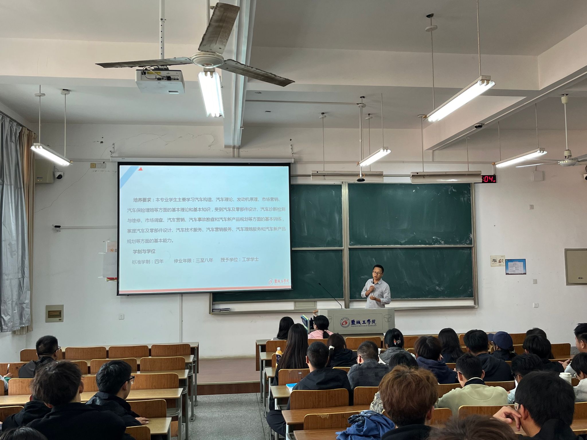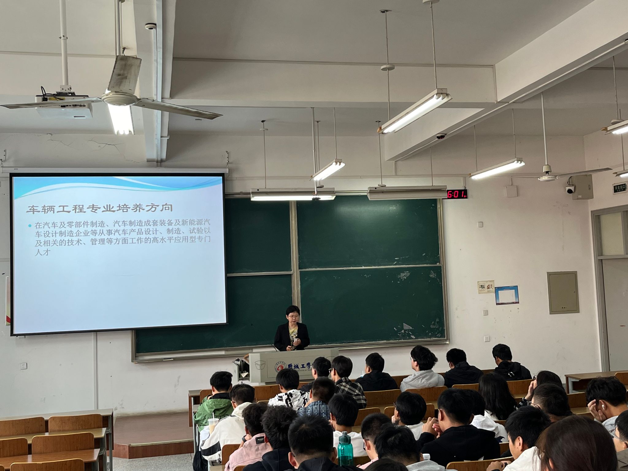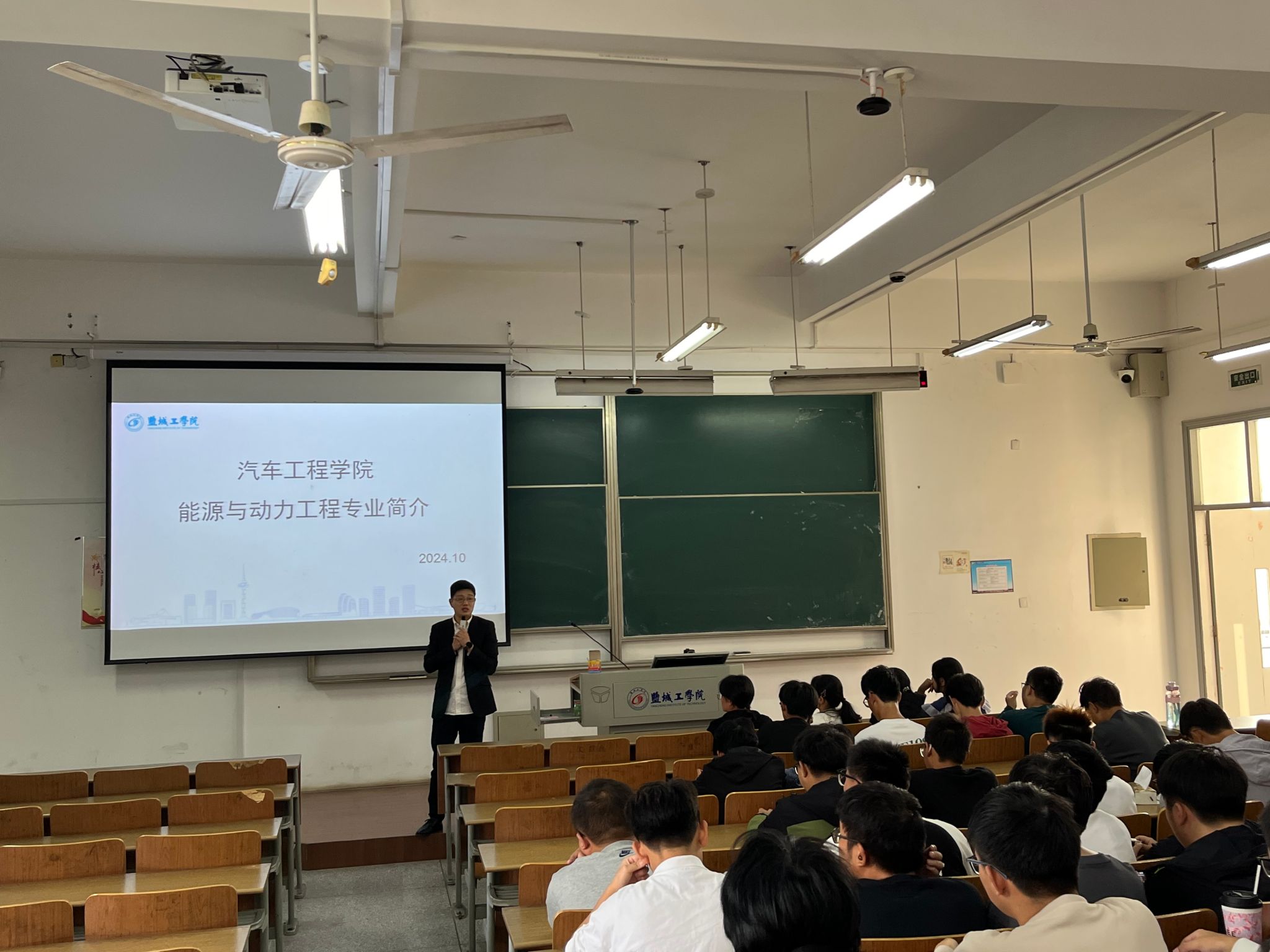 为帮助2024级新生快速融入大学生活,明确学习目标,科学规划学业发展,提高专业认知水平,10月9日下午,汽车工程学院联合“云泉”一站式社区举办2024级新生“大学第一课”专业教育活动,车辆工程专业系主任严军、能源与动力工程专业系主任陈玉炜、汽车服务工程专业系侯全会老师和新能源汽车工程专业系主任郭俊担任主讲,新生辅导员及2024级全体新生参加。