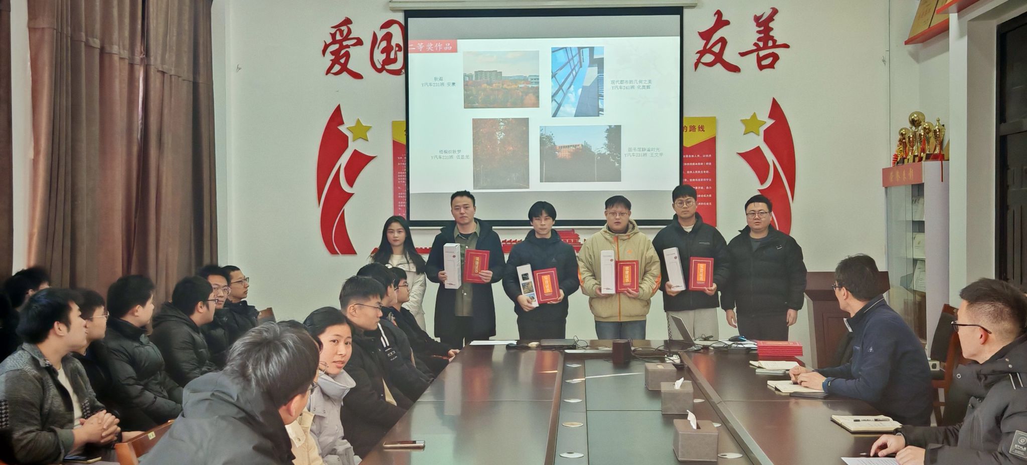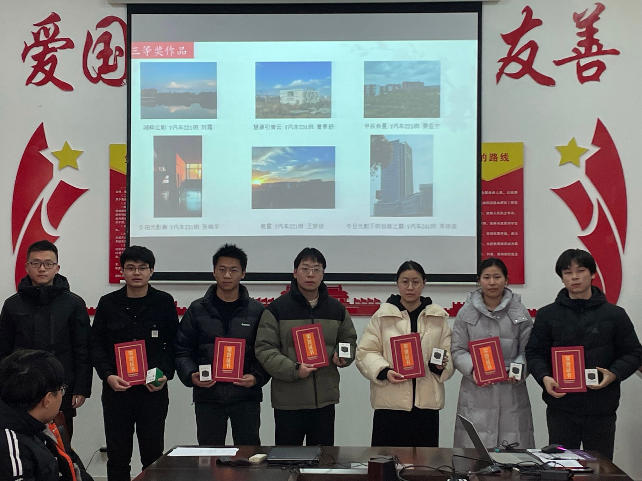 颁奖仪式邀请到了学院党总支副书记丁德惠老师、学院学工办主任孙进老师、学院团委副书记姚源老师和研究生辅导员范景森老师为获奖学生进行颁奖,摄影比赛不仅展现了秋日盐工校园的美丽景色,锻炼了同学们发现美的能力,有利于推动学院美育工作的开展,对促进学生德智体美劳全面成长具有积极意义。