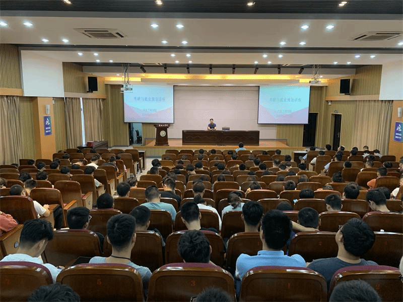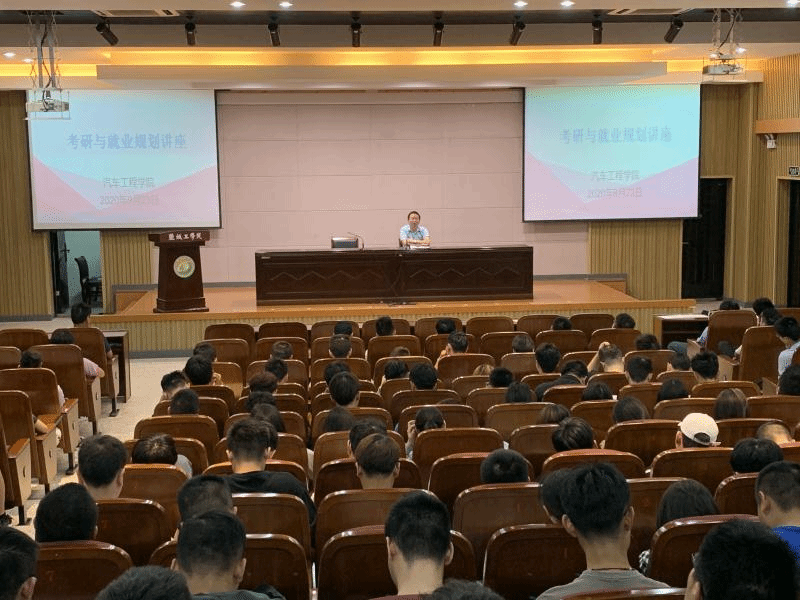 2020年9月23日下午,在机械馆报告厅,学院举办考研与就业规划讲座,学院党总支书记张雷、 汽车服务工程系主任汤沛出席,汽车服务工程专业2017、2018级同学300余人参加。