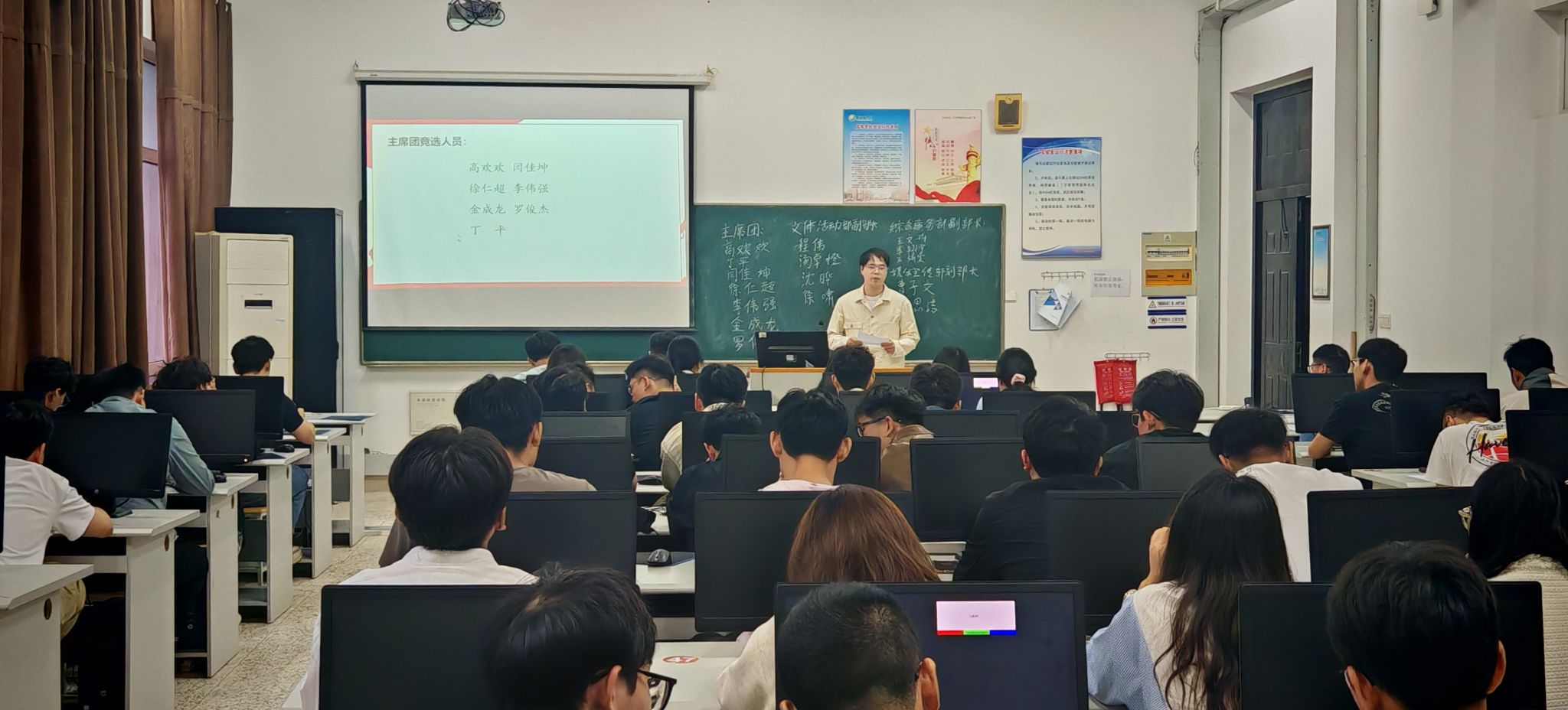 会议伊始,范景森老师明确了选举规则与纪律,并对各年级学生的学习与科研任务提出了统一要求。在随后的竞选环节中,各位候选人依次登台,就个人优势、工作构想等进行精彩阐述,展现了良好的综合素质与服务热情。