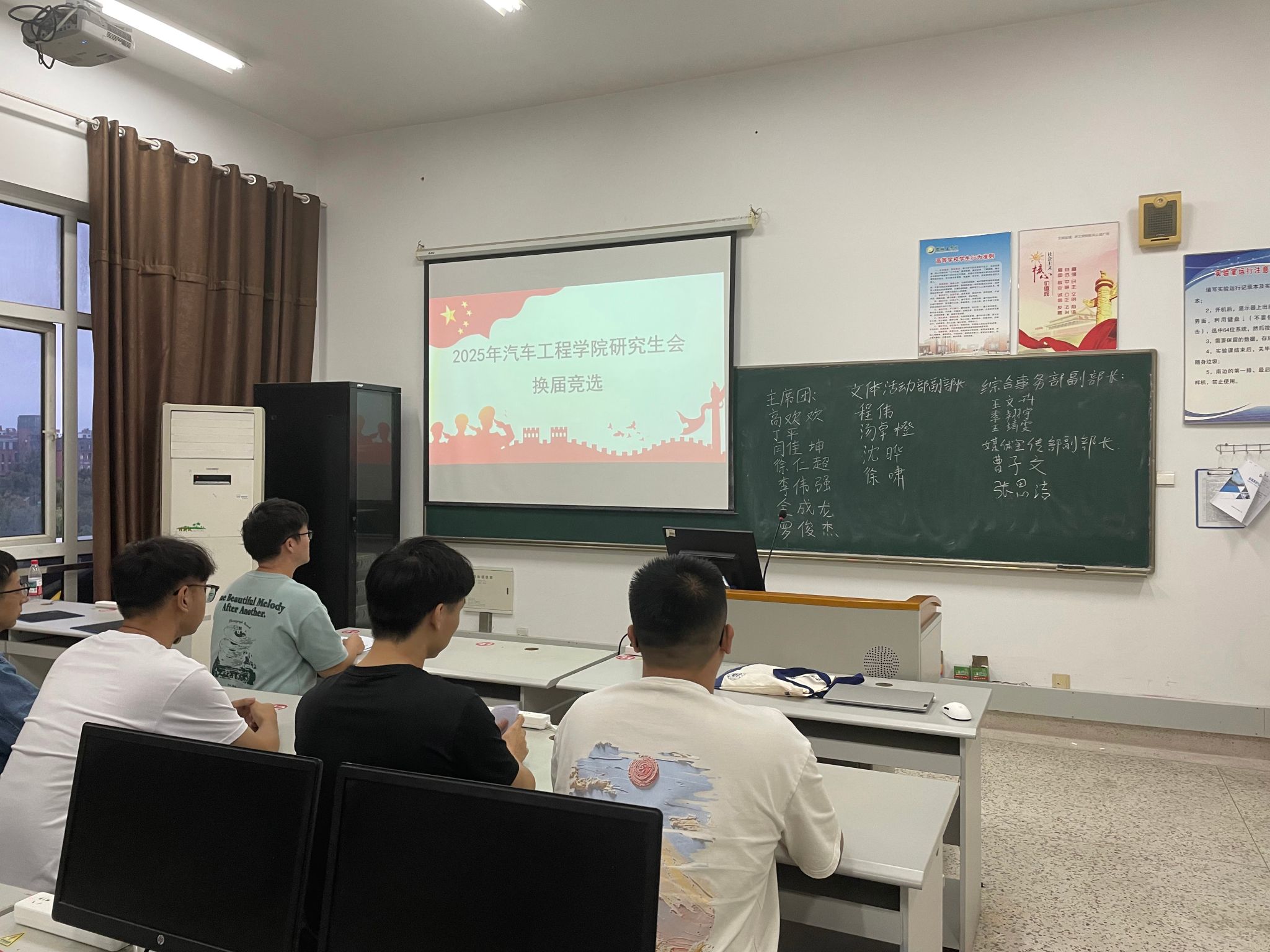 为注入研究生分会新力量,优化学生干部队伍,经学院党总支批准,汽车工程学院于2025年10月17日在机械馆B414隆重举行研究生分会换届选举会议。汽车工程学院学工办主任孙进、研究生辅导员范景森和学院全体研究生共同参与了此次会议。