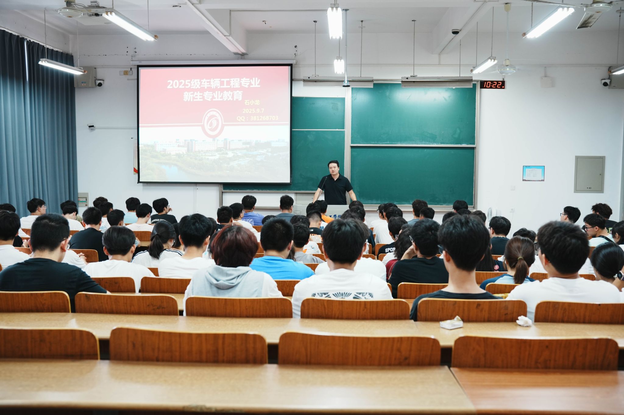 为助力新生尽快熟悉大学生活,全面了解所学专业,帮助其科学规划职业生涯,9月7日汽车工程学院车辆工程专业系在博学楼教室分别为2025年车辆工程专业普本班和国际合作班新生开展素养公开课系列活动之专业介绍会,车辆专业系系主任石小龙主讲,2025级全体车辆工程专业新生参加。