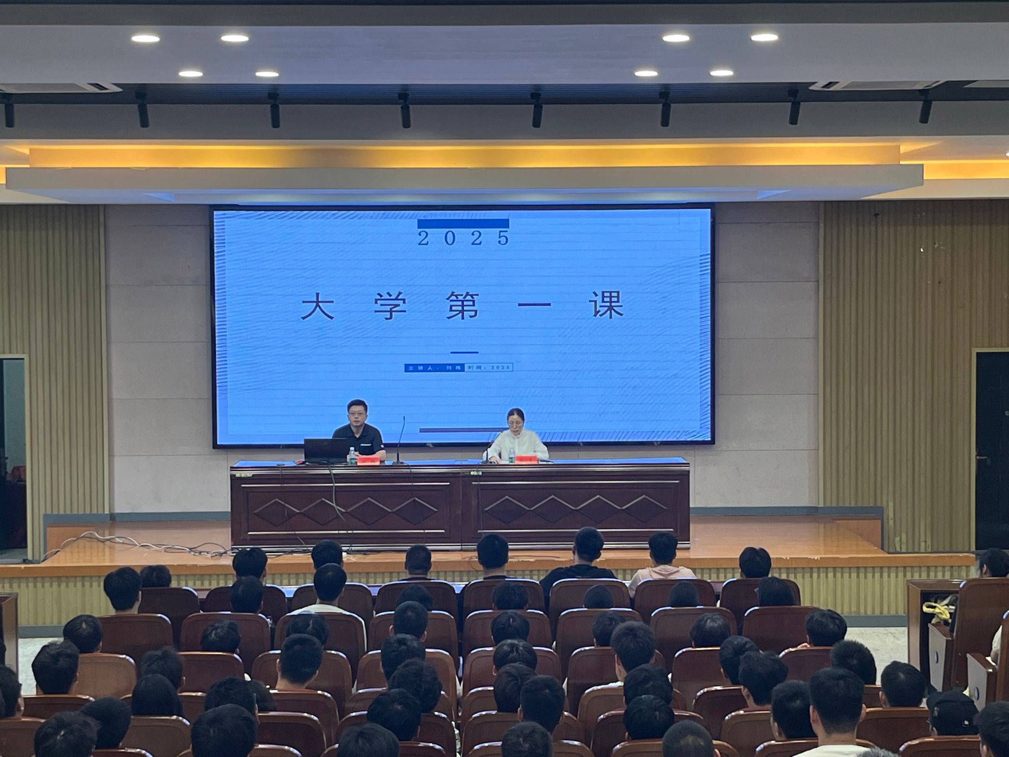 为积极引导2025级新生快速适应大学生活、坚定理想信念,树立科学的专业学习观与成长规划意识,9月7日上午,汽车工程学院在南校区机械馆报告厅举办2025级新生“大学第一课”首场讲座。院长刘玮教授主讲,党总支书记陈青主持,2025级全体新生参加。