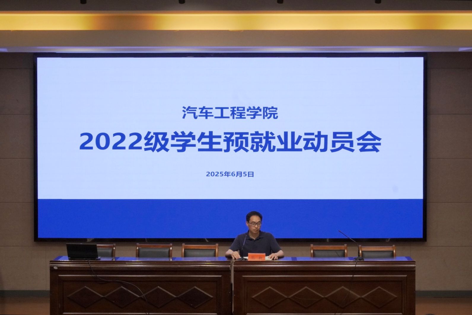 为扎实推进2026届毕业生就业实习工作,6月5日晚,汽车工程学院在南校区机械馆报告厅召开2026届毕业生预就业动员大会。学院副院长熊新做动员讲话,22级学生200余人参会。
