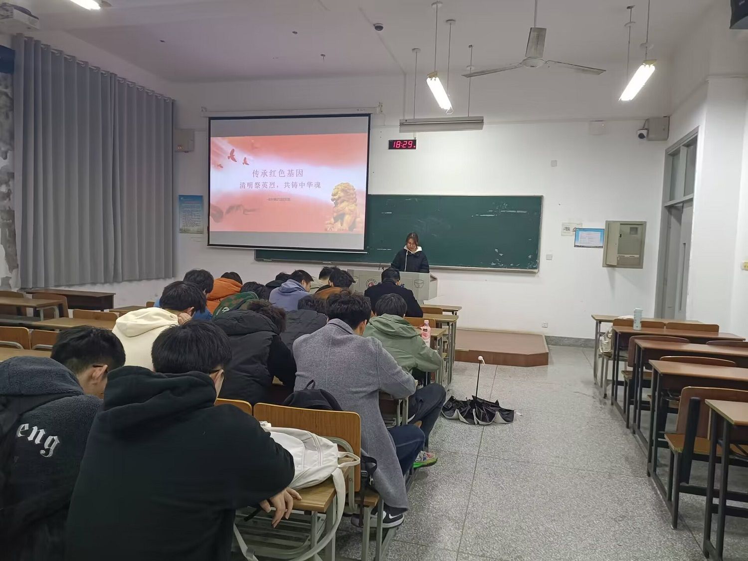 活动过程中,各班团支书组织同学们针对本次主题进行发言。B车辆232班周裕杰以饱满的热情和激昂的语调,向在场的师生们讲述了革命先烈的英勇事迹和他们的崇高精神。周裕杰同学通过生动的例子和感人的故事,让在场的每一个人都深受触动。