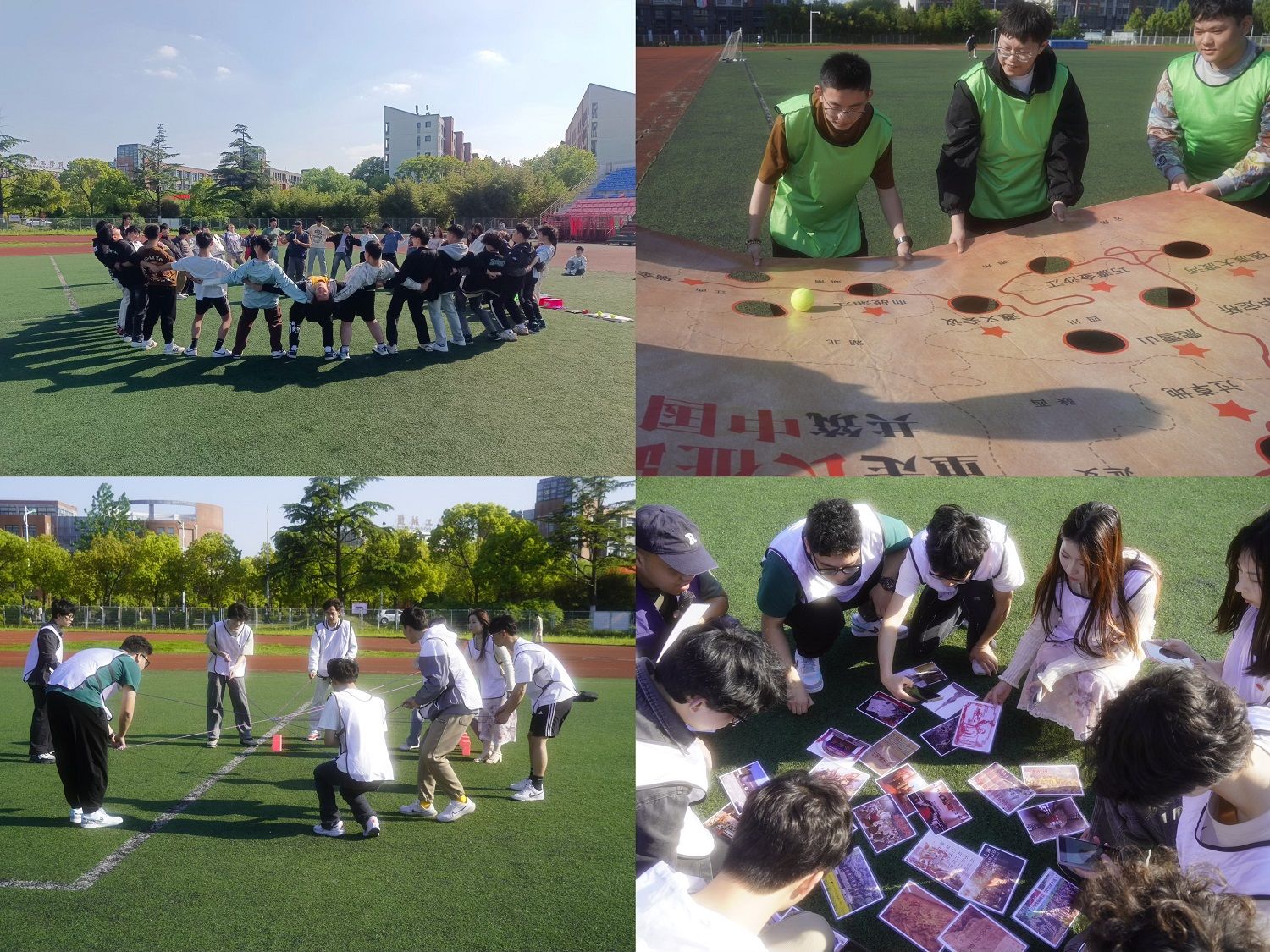 本次素质拓展活动由“重走长征路”、“合力建塔”、“光辉历程”三个项目组成。在教练的带领下,所有成员组成四支队伍,各自确定口号和队名,以铿锵有力的口号宣誓自信自强、积极向上的青春态度。每组队员们都全心投入到拓展项目里,大家互相支持、加油打气,共同克服了一个又一个难关,在团队竞赛中协同配合、凝心聚力,充分展示了青年学子的蓬勃朝气和青春活力,也营造出了同心共进、奋勇拼搏的团队氛围。