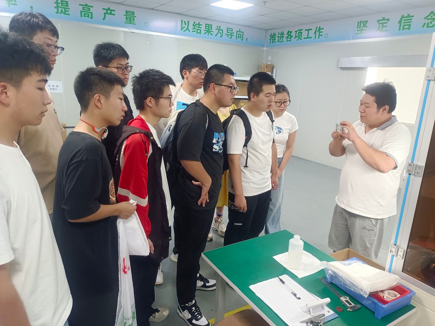 在工作人员的引导下,成员们参观了公司的生产车间。首先是有序的生产线,大家了解了电池的生产过程,从零件加工到装配,再到质量检测,每个环节都有严格的要求。随后是产品展示区,那里陈列着各类产品,包括智能门锁、锂蓄电池等,大家近距离观察了这些产品的外观和性能特点,对动力科技产品有了更直观的认识。最后在会议室,公司代表热情接待了团队成员,并详细介绍了公司的历史、业务范围和发展方向,团队成员就专业问题进行提问。