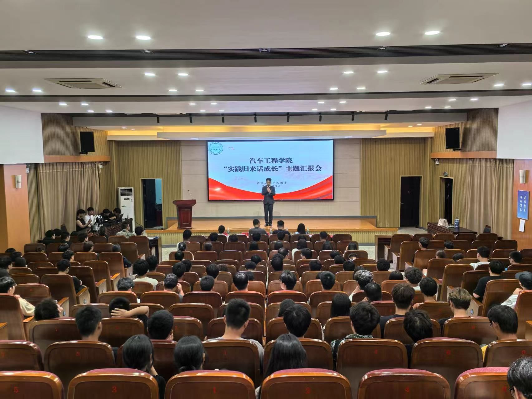 为充分展示暑期社会实践优秀成果,引导青年大学生知行合一、开拓奋进,9月20日晚汽车工程学院在南校区机械馆报告厅举行2024年“实践归来话成长”暑期社会实践成果汇报会。学院党总支副书记丁德惠、学工办主任吴慰春、团委副书记孙进及全体辅导员出席,2024级新生及大二、大三年级学生代表等200余人参加。