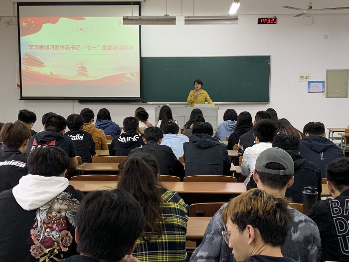本次团日活动分为两个部分。活动第一部分辅导员给责任班级上团课。辅导员老师围绕重要讲话的内在逻辑、重要观点、原创性论断与重大意义,伟大建党精神以及中国共产党人的精神谱系,以史为鉴、开创未来的“九个必须”“三个不负”“一个号召”等方面与青年大学生们进行了广泛深入的研讨,感悟思想伟力,凝聚奋进力量。第二部分团课后各团支部青年学生参与了“七一”重要精神讲话精神问卷答题。