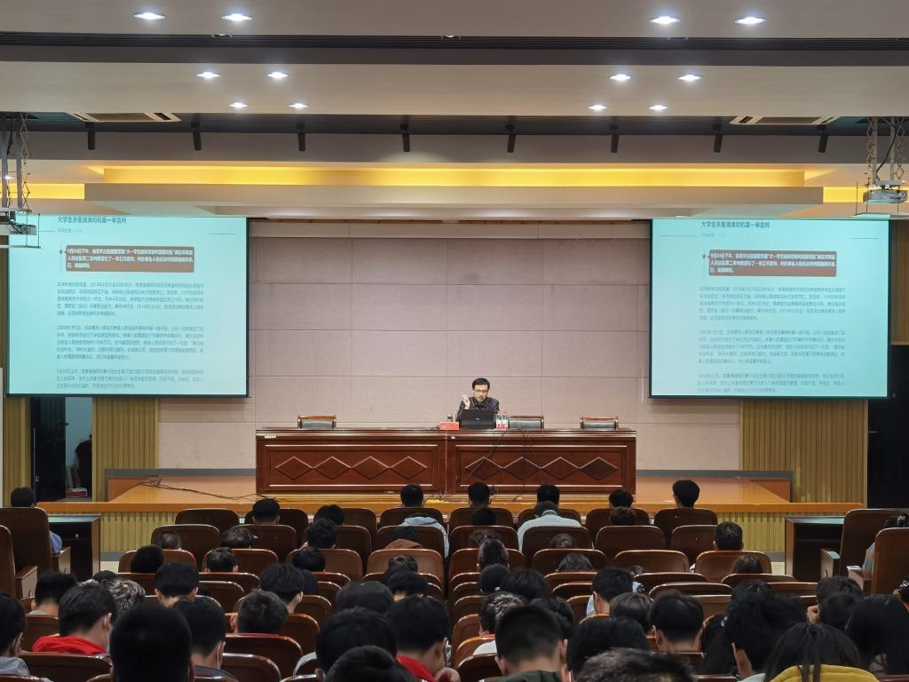 树立宪法权威,培育法治少年。十一月七日,为进一步提高在校大学生的法治观念和法律意识,汽车学院于机械馆三楼报告厅举行了大学生普法教育。会议由辅导员姚源主持,马克思学院形势与政策教研室主任董海龙主讲,会议成员为学院全体学生。