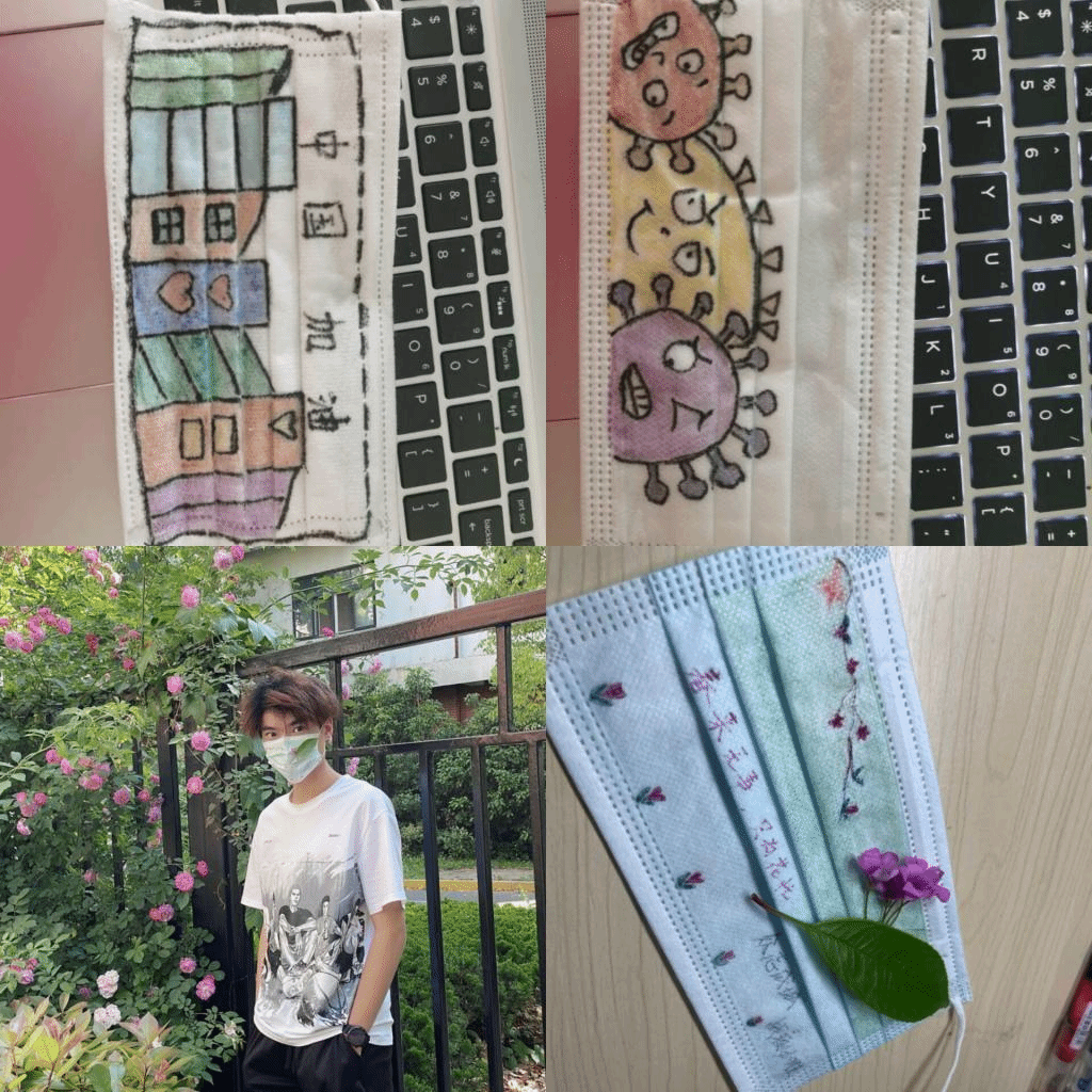 在“笔绘山河,疫濯尽散”活动中。有的同学在口罩上写上了对学校的美好祝福;还有的同学画上了我们的抗疫英雄“大白”。活动更坚定了同学们积极抗疫的决心,体现了当代大学生的责任与担当。