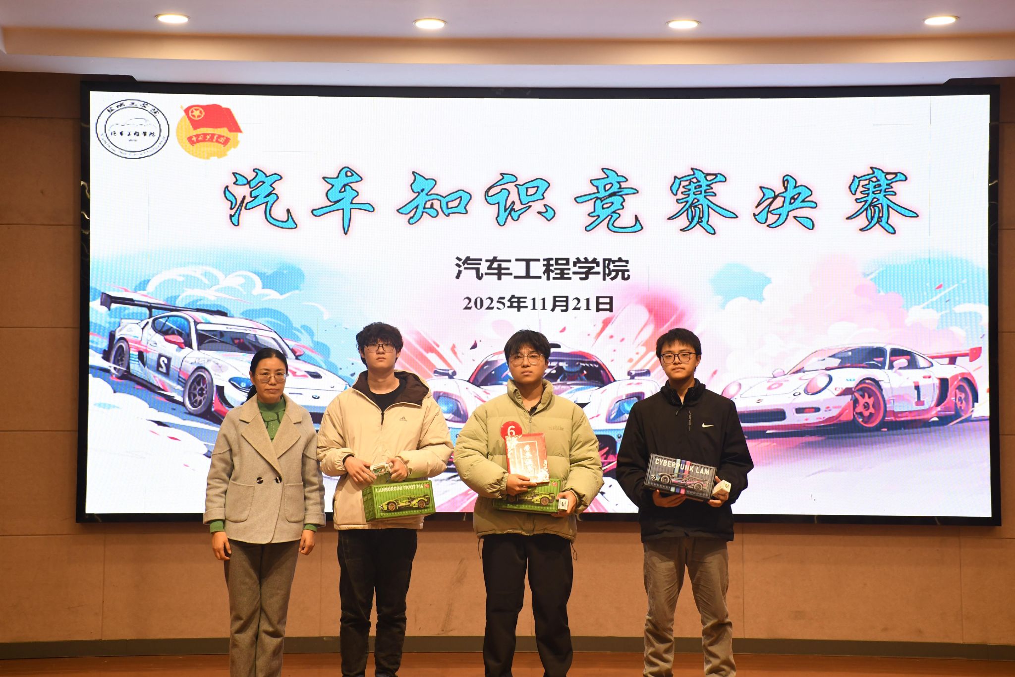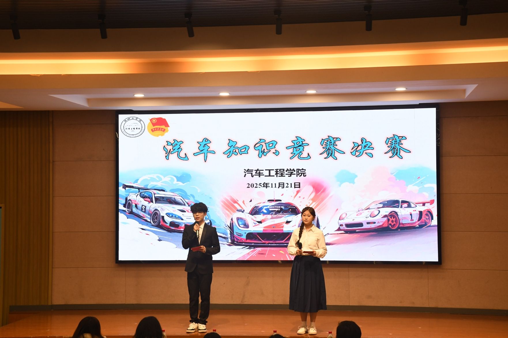 为激发学生专业学习热情,搭建技能交流与风采展示平台,11月21日晚,由校团委主办,汽车工程学院承办的第三十届校园文化艺术节子项目汽车知识竞赛在机械馆报告厅举办。汽车工程学院党总支书记陈青、校团委实践创新部主任徐潘虹、校团委组宣部主任刘亭亭、汽车工程学院学生科主任孙进担任比赛评委,200余名师生齐聚现场,共同见证了这场兼具知识性与竞技性的专业盛宴。