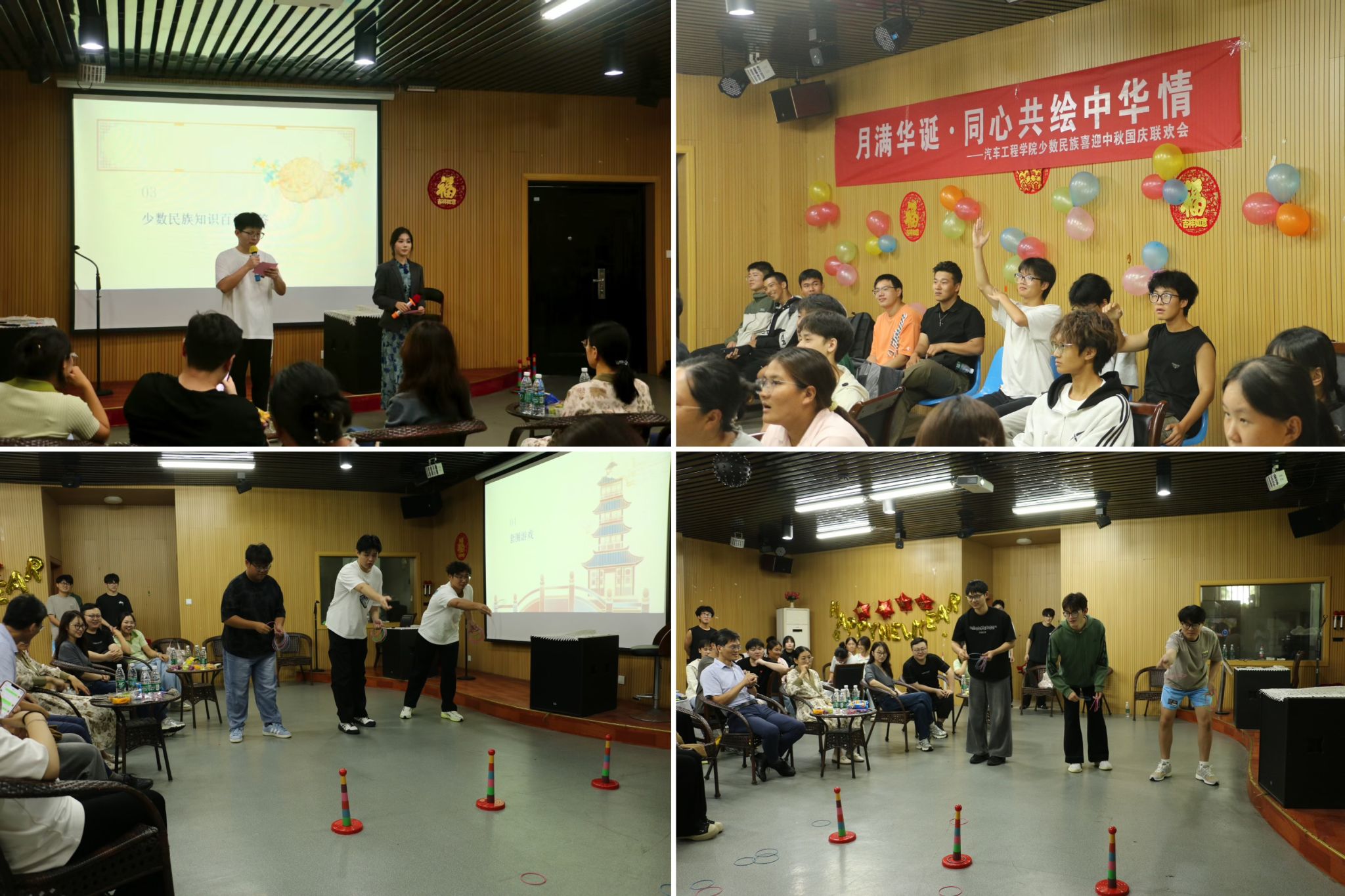 为持续深化铸牢中华民族共同体意识,画好民族进步“同心圆”,9月26日下午汽车工程学院在南校区大学生活动中心举办“月满华诞·同心共绘中华情”民族团结主题活动。学院党总支书记陈青、副书记丁德惠、全体辅导员及40余名学生代表齐聚一堂,共庆团圆佳节,共话民族情谊。
