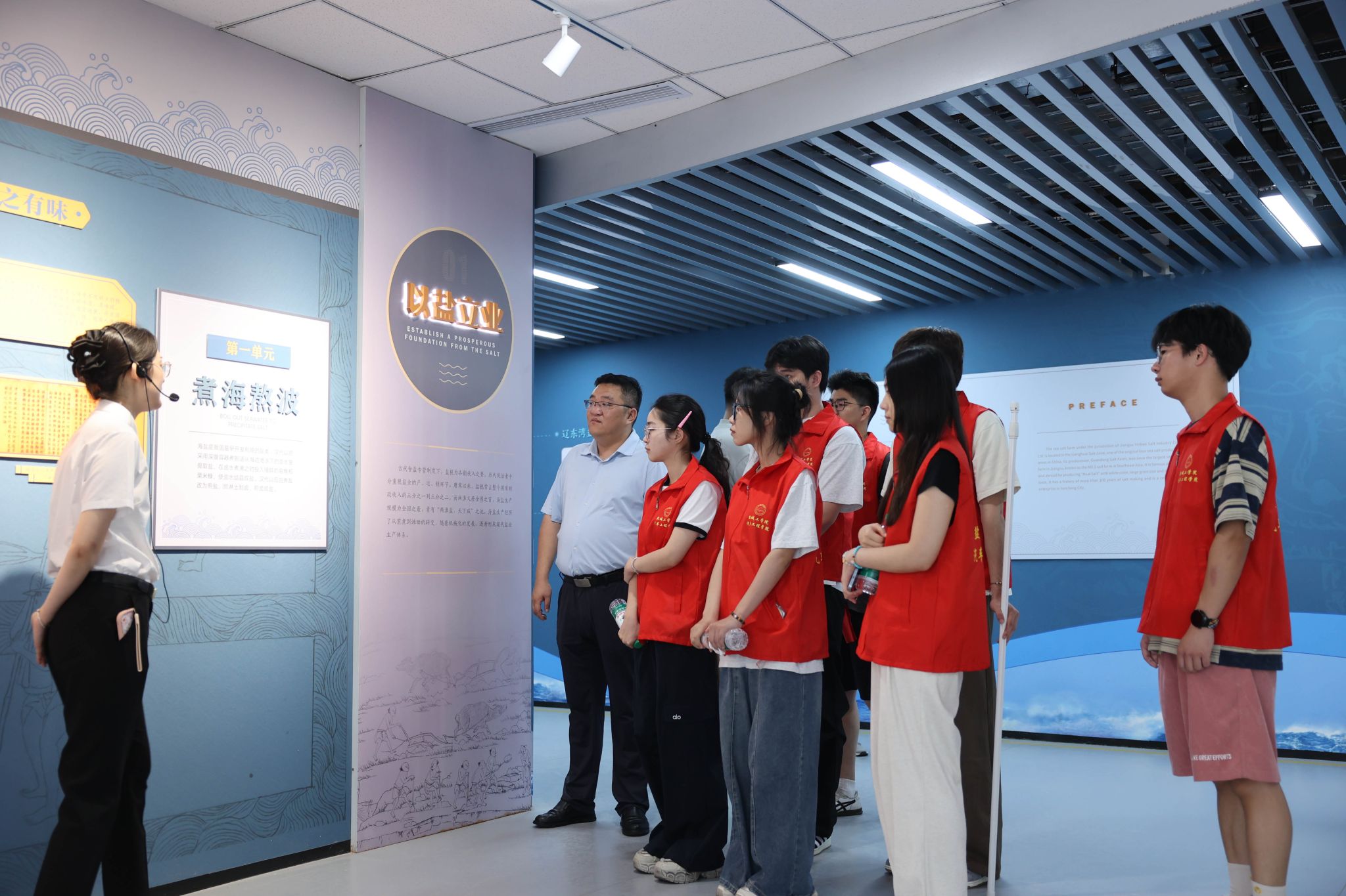 实践团首站走进银宝盐业公司海精盐厂,开启海洋文化研学之旅。在盐业历史展厅,实践团观摩古法制盐场景复原与现代智能化生产线,观看传统制盐技艺演示,听述盐场百年传承故事,考察盐包制作与盐雕创作,直观感受海洋文明从“煮海为盐”到“智能智造”的千年变迁,深切领悟“精益求精、守正创新”的制盐工匠精神。据了解,银宝盐业公司海精盐厂年产能30万吨,产品远销日韩及东南亚市场,同时致力打造“工业旅游+文化研学”盐文化衍生产品,建设盐文化传承基地,促进海洋经济与文旅产业深度融合。