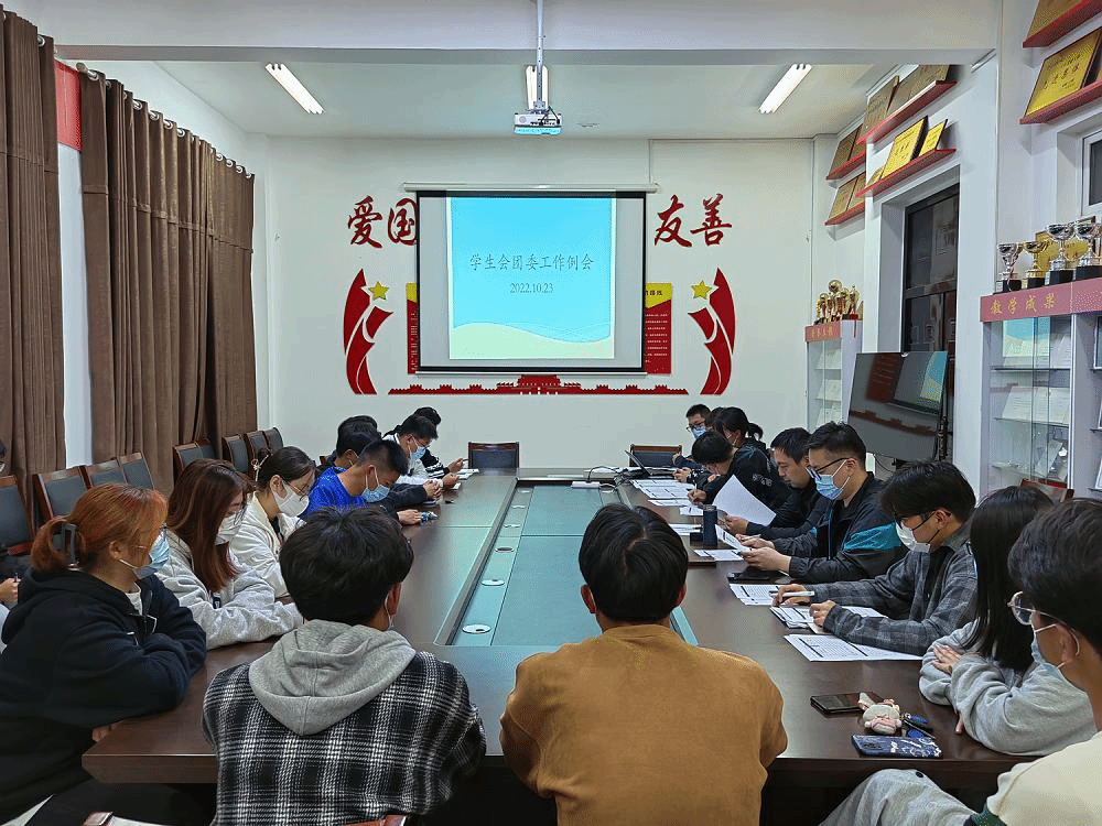 10月23日晚,汽车工程学院于机械馆A323举行学生会团委部门例会,学生会团委负责老师、学生会主席团、团委学生兼职副书记以及各部门部长参加。会议由团委副书记孙进主持。