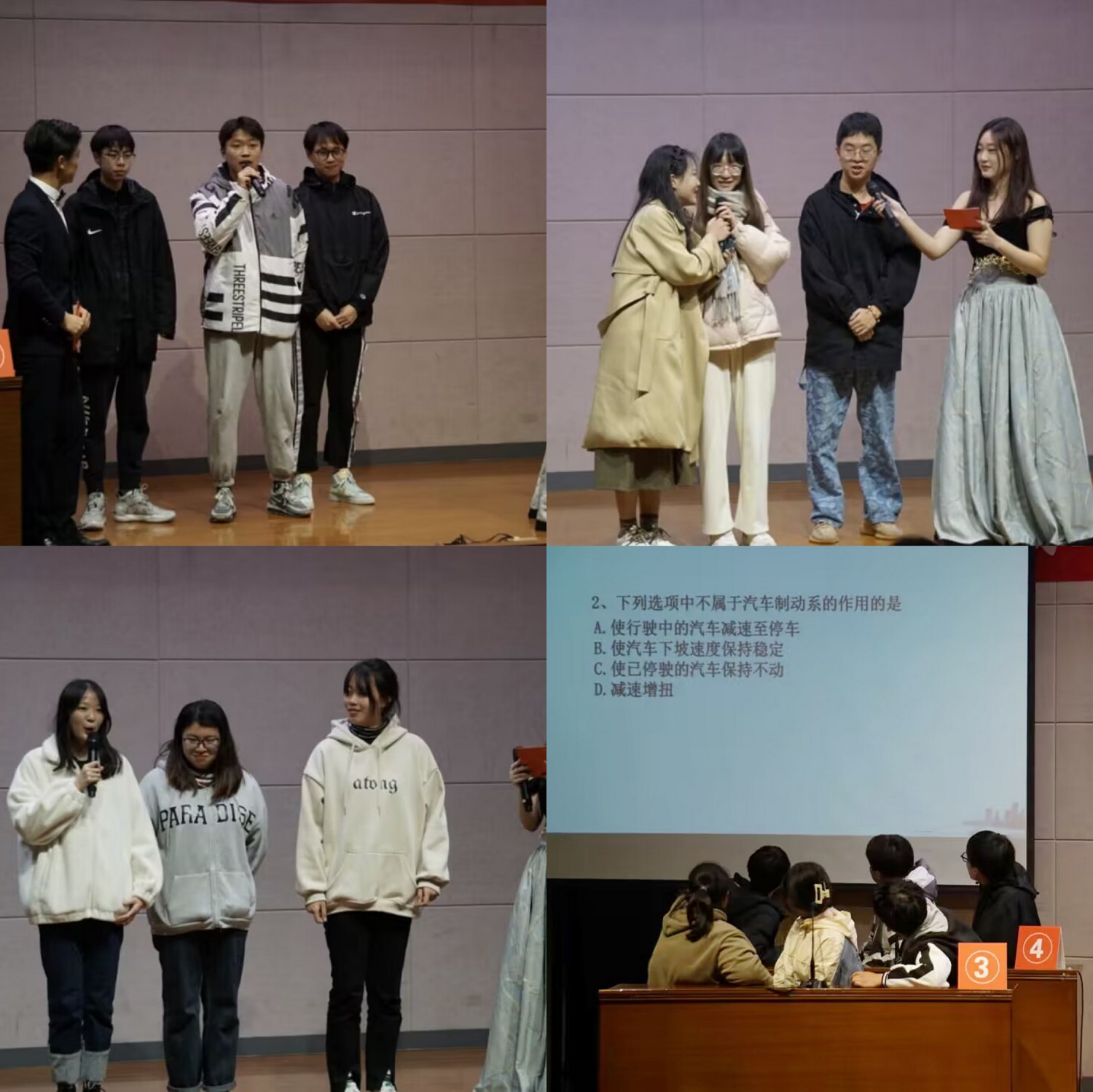 为进一步弘扬汽车文化,丰富大学生课余生活,11月18日晚,汽车工程学院在南校区机械馆报告厅举办汽车知识竞赛决赛,校团委副书记方璇,汽车工程学院党总支副书记姜华、院长助理郑竹安,校团委组宣部主任徐潘虹、实践创新部主任渠颜颜、社团管理部主任刘亭亭,汽车工程学院教科研办公室主任汪洪林等担任比赛特邀嘉宾。